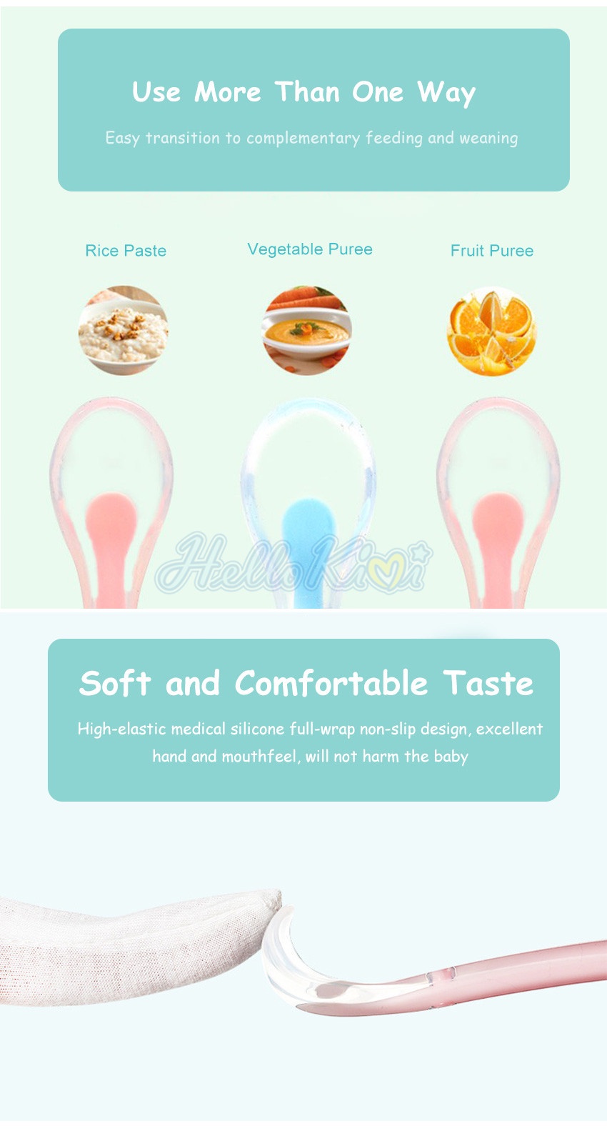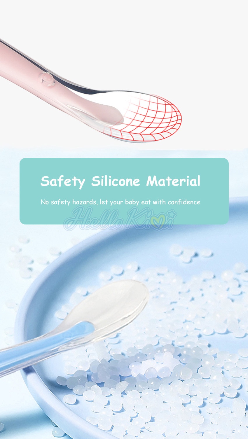 Chào mừng bạn đến với HelloKimi - Thế giới Đồ chơi! Chúng tôi có nhiều món đồ chơi khác nhau, là món quà tuyệt vời nhất cho trẻ em!!! ❤ Thương hiệu sản phẩm: HelloKimi ❤ Chất liệu: Silicone cấp thực phẩm❤ Kích thước: 16,5x2,5cm❤ Trọng lượng: 73g / 2pcs❤ Thích hợp cho: bé 0-3 tuổi❤ Màu sắc: Xanh lam / hồng ❤ Gói chứa: 2 * thìa, 1 * hộp lưu trữ Đặc điểm: Chất LIỆU silicone THÂN THIỆN: Được làm bằng silicone mềm cấp thực phẩm, chất liệu này không gây dị ứng và có khả năng chống mùi, an toàn và lành mạnh cho bé khi sử dụng mà không gây hại. Xử LÝ ĐƯỢC CHUYÊN NGHIỆP ĐỂ DỄ DÀNG GRIP: Những chiếc thìa silicon cho bé này được thiết kế tiện dụng để cầm trên tay bé. Tay cầm có chiều dài, kích thước và đường kính hoàn hảo để cầm thoải mái và chạm tới đáy lọ đựng thức ăn, đặc biệt là khi giới thiệu thực phẩm rắn cho chế độ ăn uống của bé. Mặt BẰNG MỤC ĐÍCH CHO BÉ ĐẦU TIÊN ĐỂ TỰ KÉO: Bộ thìa này được thiết kế đặc biệt để khuyến khích trẻ tự bú một cách an toàn ở giai đoạn đầu của chúng. Muỗng dẻo cung cấp phần cắn phù hợp trong khi nó cũng bảo vệ nướu của chúng. Thìa 2,5cm không có áp lực cho việc há miệng trẻ nhỏ. Đa MỤC ĐÍCH: Trẻ sơ sinh thích sử dụng các dụng cụ mềm như một món đồ chơi mọc răng. Thìa silicon mềm hoạt động tuyệt vời như một chiếc dây buộc cũng như một món đồ chơi cho con bạn. Muỗng trẻ sơ sinh của chúng tôi mang đến cho bé sự độc lập mong muốn và khiến việc cố gắng ăn uống trở nên thú vị.