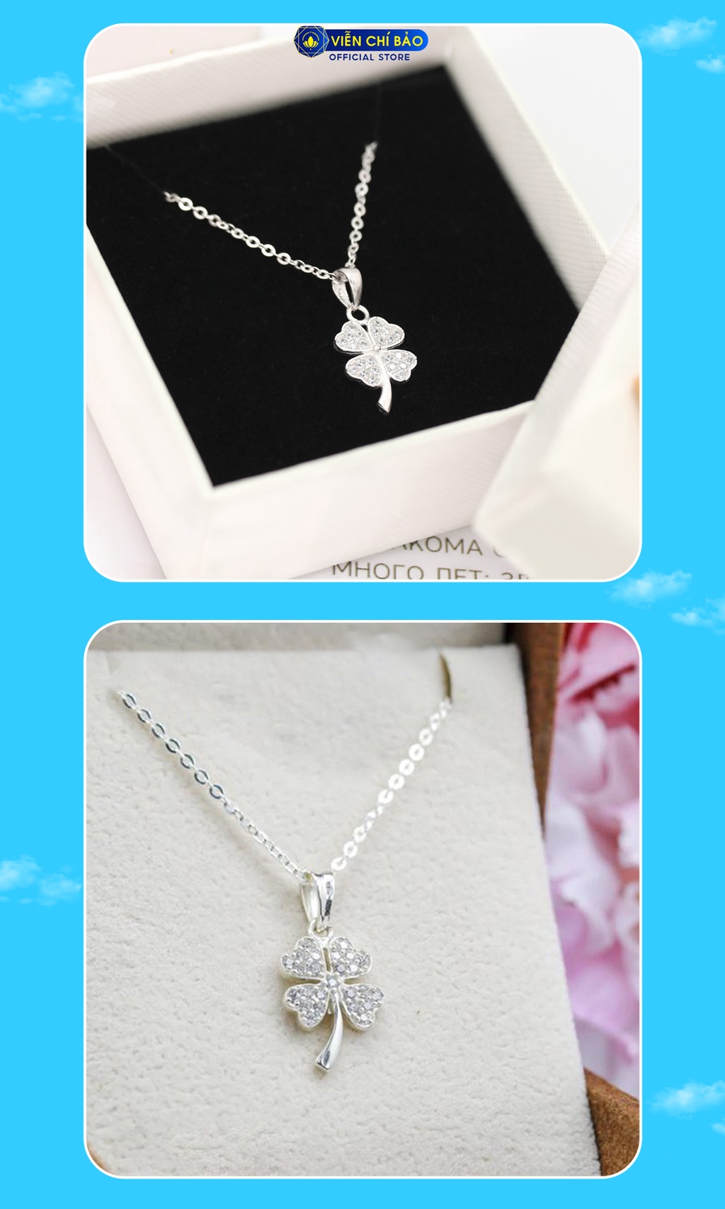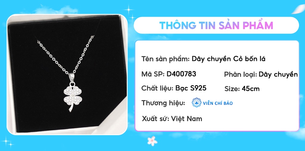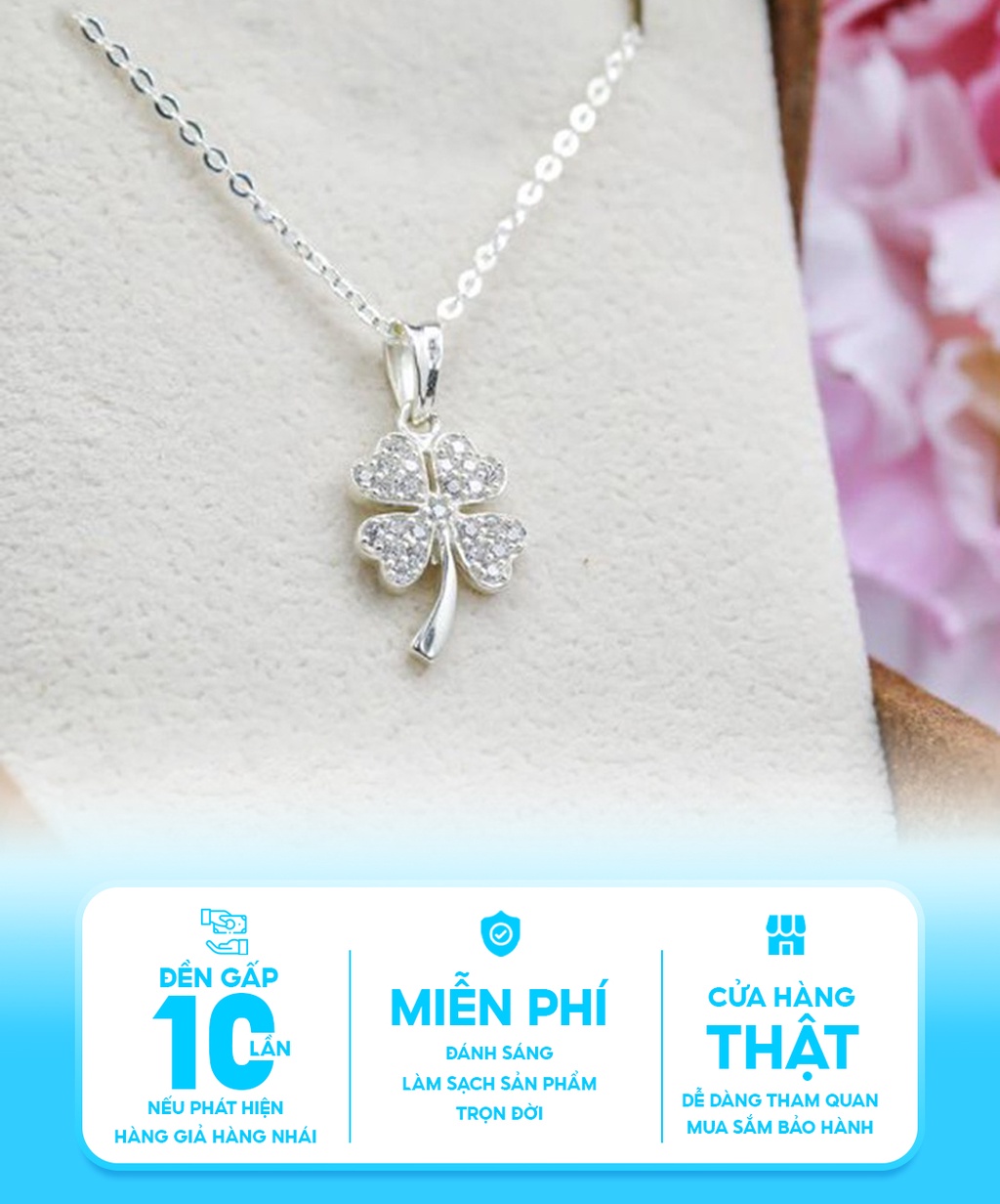 Dây chuyền bạc nữ Cỏ bốn lá may mắn chất liệu bạc 925 thời trang phụ kiện trang sức Viễn Chí Bảo D400783