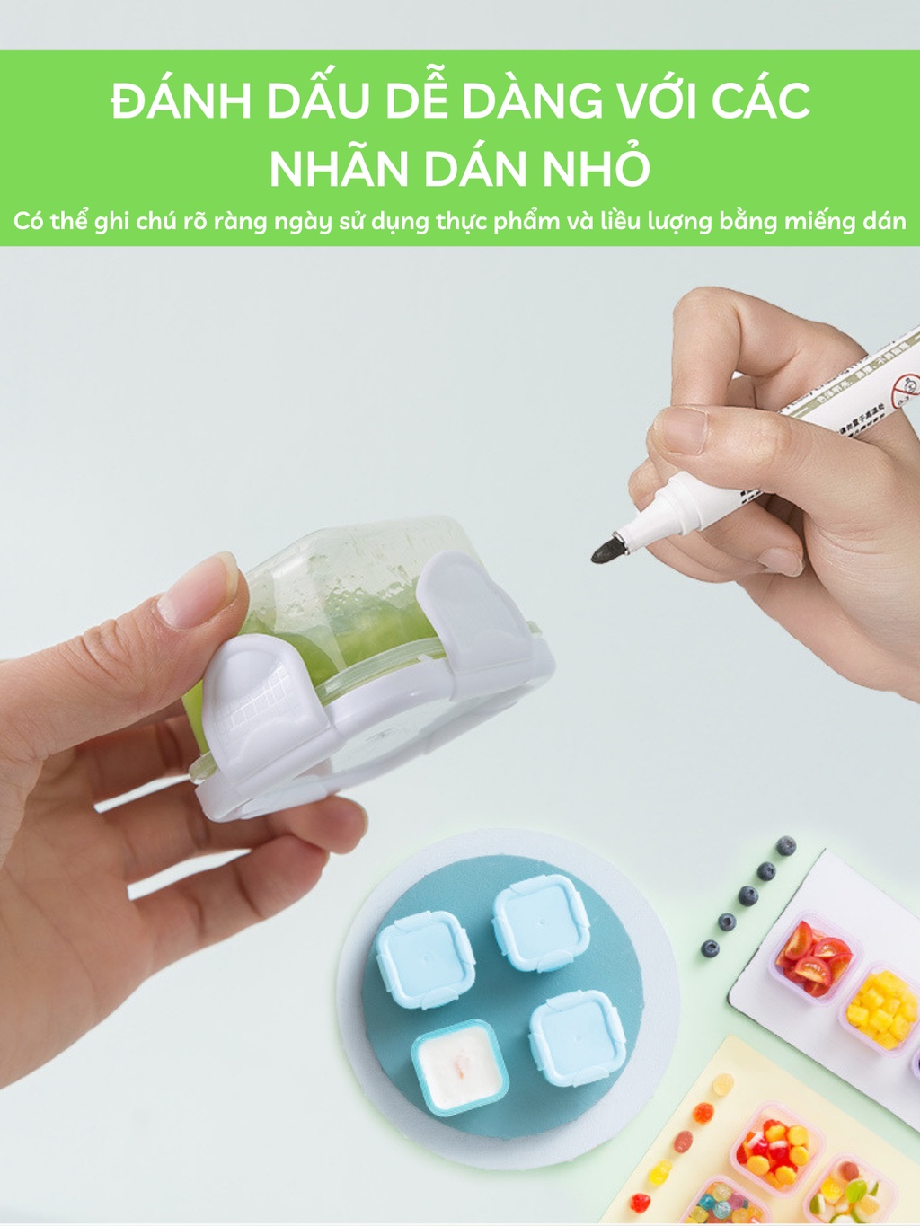 - Hộp trữ đông có nắp được dùng để bảo quản các loại thực phẩm ăn dặm và các loại thực phẩm đã cắt nhỏ