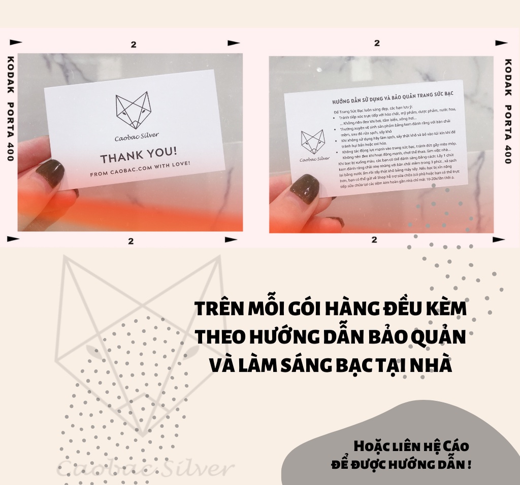 ? Đã bao lâu bạn chưa thưởng cho bản thân một món trang sức bạc ưa thích? Hay bạn muốn một món quà tặng trang sức nhưng chưa tìm được địa chỉ uy tín? Đến với Cáo Bạc Jewellery, bạn sẽ tìm thấy những sản phẩm với kiểu dáng đa dạng, bắt kịp xu hướng và hơn thế nữa là vô cùng ý nghĩa ?Cáo Bạc JEWELLERY xây dựng thương hiệu 7 năm và đã có hai cửa hàng lớn tại HN và HP, chất lượng trang sức bạc chuẩn Quốc tế và uy tín trên từng sản phẩm. Tại Cáo Bạc trải nghiệm của khách hàng là thứ chúng tôi đặt lên hàng đầu. ? THÔNG TIN SẢN PHẨM: - Chất liệu: Bạc ta 925 cao cấp, không xi mạ pha tạp, không han gỉ, không dị ứng, dễ làm sáng- Kiểu dáng: Thiết kế tinh tế, đơn giản mẫu mã phù hợp với mọi người- Sản xuất: Sản xuất trực tiếp tại xưởng Việt Nam- Set sản phẩm bao gồm: 3 ĐÔI KHUYÊN TAI- Kích cỡ: 1 đôi 2mm, 1 đôi 3mm, 1 đôi 4mm- Chất liệu Đá CZ nhập khẩu sáng bền- Quy cách sản phẩm: Đi kèm 01 hộp in logo Cáo Bạc sang trọng (miễn phí).? HƯỚNG DẪN SỬ DỤNG Đối với sản phẩm trang sức bạc, để sản phẩm bạc sáng lâu quý khách nên: - Khi đeo, không nên tiếp xúc với nước thường xuyên để tránh sản phẩm nhanh bị oxi hóa - Thường xuyên tự đánh bóng, hoặc liên hệ shop để được hỗ trợ- Khi không đeo, bảo quản nơi khô ráo, tránh ánh nắng trực tiếp, nơi có nhiệt độ cao hoặc ẩm thấp - Nên để sản phẩm trong túi zip, thêm 1 miếng bông gòn nhỏ để hút ẩm giúp bảo quản tốt hơn? CÁO BẠC CAM KẾT: - Bảo hành và hỗ trợ sửa chữa trọn đời kể cả các lỗi do sử dụng (trừ các lỗi không thể khôi phục), có phí hoặc miễn phí tuỳ tình trạng sản phẩm.- Hàng giống như hình 100%- Chất lượng sản phẩm được kiểm định kĩ lưỡng trước khi gửi cho Quý khách - Tư vấn hỗ trợ 24/24 giải đáp mọi thắc mắc khi khách hàng gọi vào số hotline hoặc nhắn tin cho Shop - Khách hàng cũ: Mua lần thứ 2 trở đi sẽ được nhận mã giảm giá của Shop - Giao hàng toàn quốc, nhận hàng tại nhà, nhận hàng mới thanh toánCáo Bạc cảm ơn bạn đã tin tưởng shop. Hãy bấm theo dõi và đánh giá shop 5? nhé ?#khuyentai #bongtai #bongtaibac #khuyentaibac #khuyenbac #trangsucbac #trangsuc #phukienbac #phukienxinh #nutrang #phukien #khuyentainu #khuyentaixinh #hoatai #hoatainu #hoataibac #khuyentaibacta #khuyennuthoitrang #phukienthoitrang #phukienbac #trangsucbac