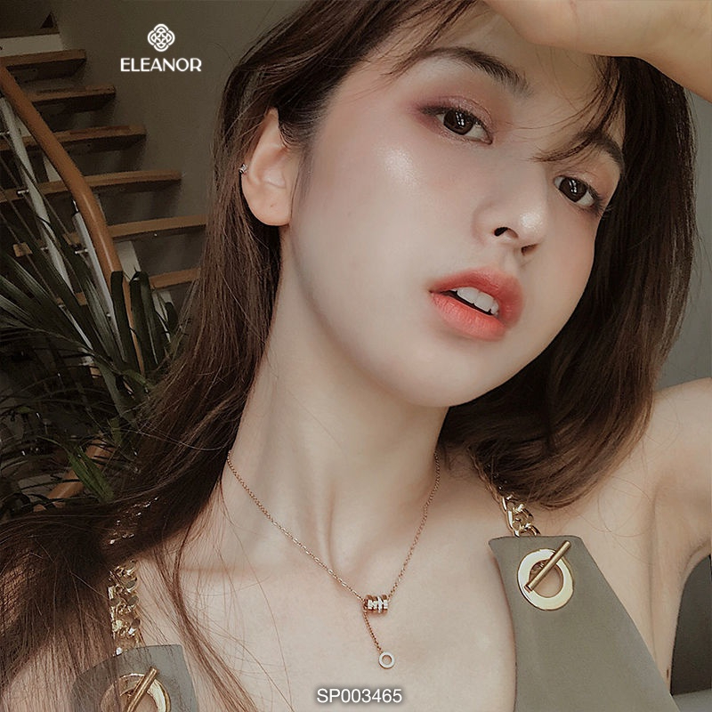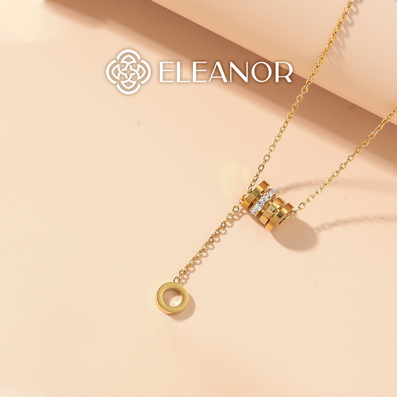 Dây chuyền nữ titan Eleanor Accessories dáng dài mặt hình trụ đính đá phụ kiện trang sức thời trang 3465