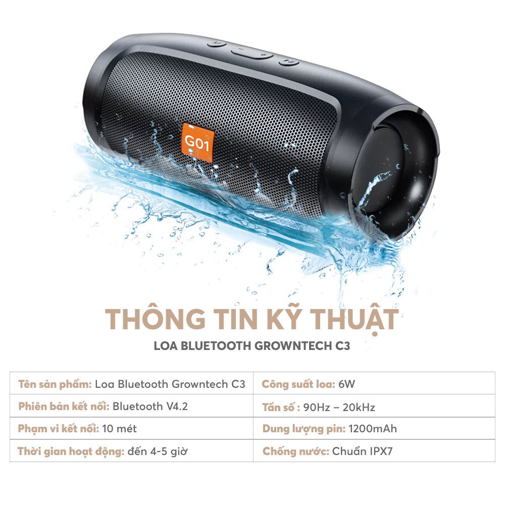 Loa bluetooth GrownTech charge 3+ mini 20W chống nước vỏ nhôm cao cấpBộ sản phẩm gồm: 1 loa, 1 cáp sạc - Thiết kế hình trụ, chắc chắn. - Màu sắc trẻ trung.- Phát nhạc liên tục đến 9-11 tiếng- Bluetooth: 4.0, kết nối khi sử dụng- Thời gian sạc loa blutooth đầy: 4h- Âm thanh nét và trung thực- Bảo hành loa: 24 thángSẵn sàng đổi trả hoặc hoàn lại tiền cho khách hàng trong 7 ngày kể từ ngày nhận hàng cho những lý do sau :1. Sản phẩm bị lỗi.2. Hư hỏng trong quá trình vận chuyển.3. Khách hàng đưa ra lý do hợp lý về sự không hài lòng đối với sản phẩm và được sự đồng ý từ Shop.#loakhongday #loabluetooth #Loathongminh #loa #bluetooth #loadidong #loachinhhang #loanhogon #loamini #loabluetoothmini #loacamtay #loanghenhac #loaminibluetooth #loanghenhachay #loanghenhacbluetooth #Loahay #loausb #loathenho