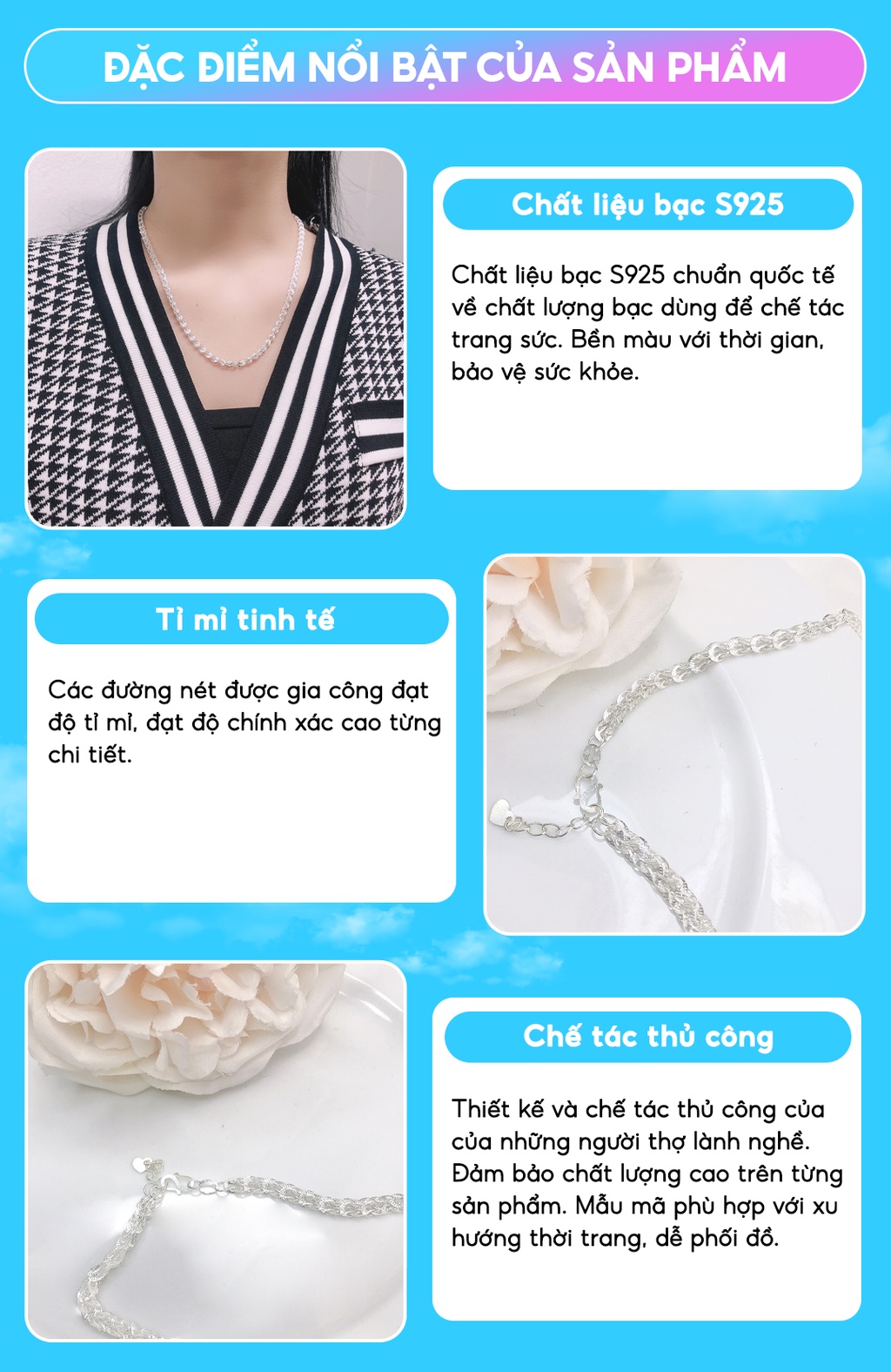 - Kiểu Dáng : thiết kế dây chuyền bạc nữ tinh tế sắc sảo, dây chuyền nữ mẫu mã mới nhất theo Trend !