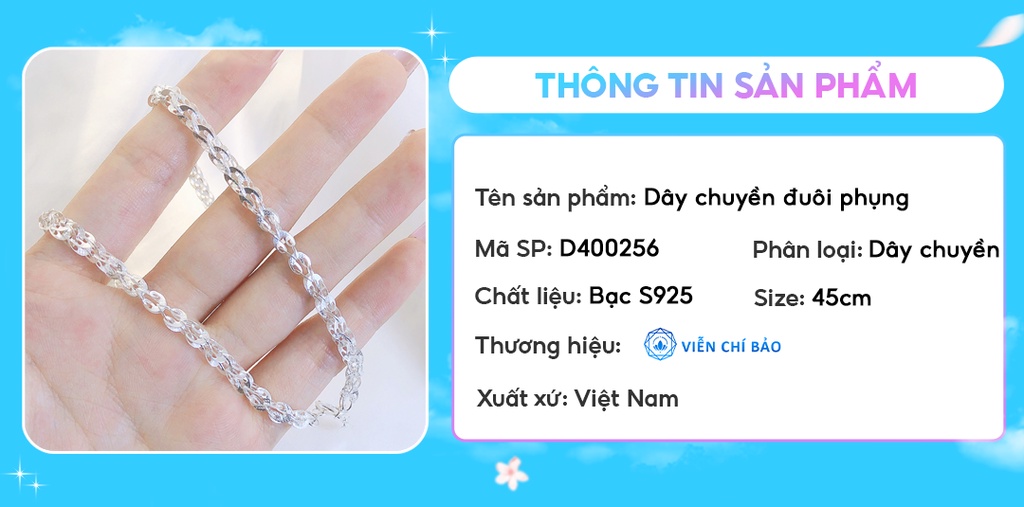 Dây chuyền bạc nữ Đuôi Phụng vòng cổ chất liệu bạc 925 thời thời trang phụ kiện trang sức nữ Viễn Chí Bảo D400256