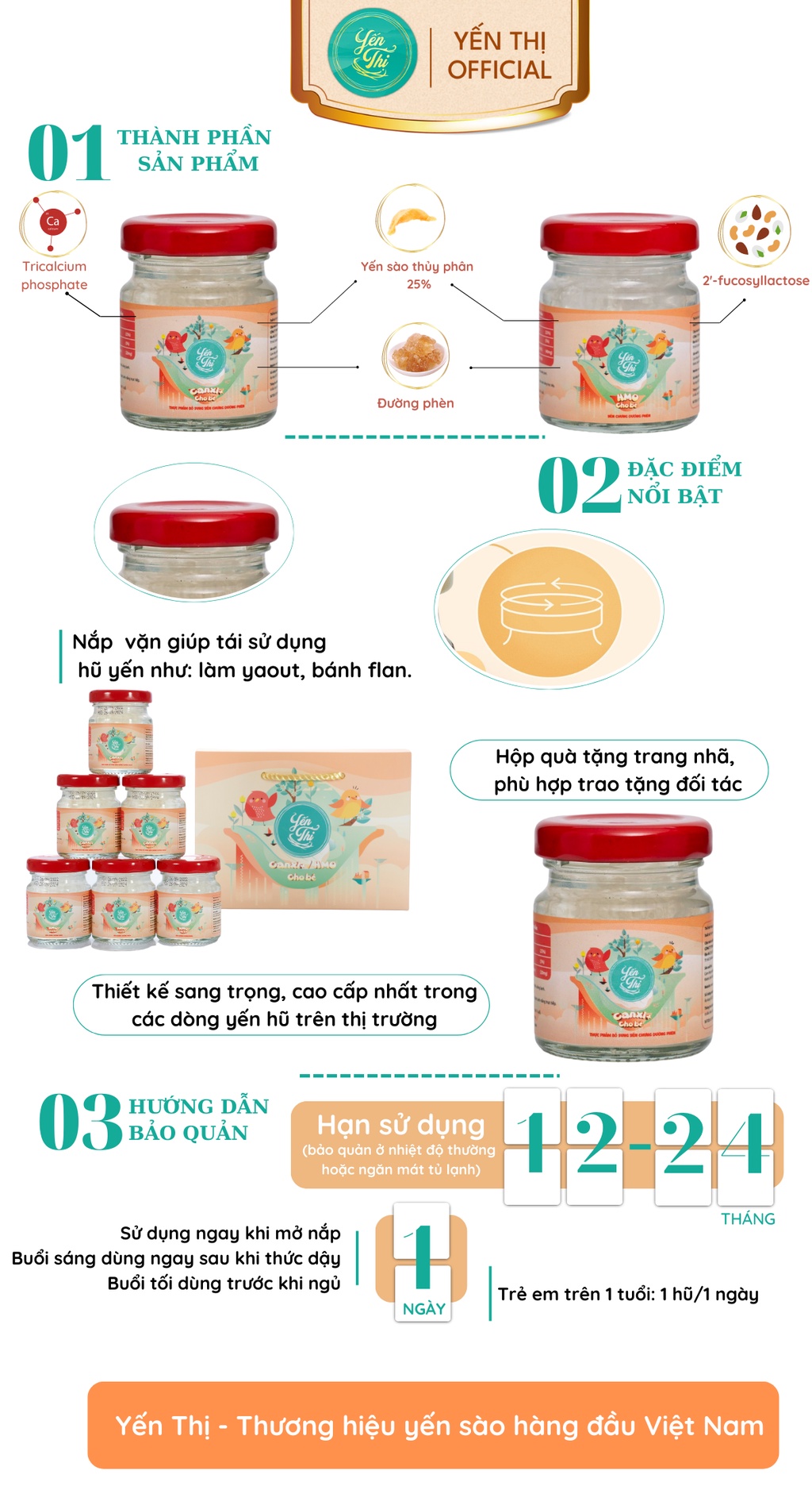 Nguồn gốc sản phẩm: Thương nhân chịu trách nhiệm về sản phẩm: Công ty TNHH YẾN THỊ ⚠️⚠️⚠️Sản xuất tại: Khánh Hoà. Số chứng nhận cơ sở đủ điều kiện ATTP: 386/2018/NNPTNT-KH cấp ngày 29/11/2018. STCB: 47/DTFOOD/2020 Chứng nhận: ISO 22000:2018⚠️⚠️⚠️Sản phẩm phân phối độc quyền toàn quốc bởi: YẾN THỊ_OFFICIAL THÀNH PHẦN SẢN PHẨM? Dòng Yến Kids Canxi + : Yến sào thủy phân 25%, đường phèn, tricalcium phosphate (20mg).? Dòng Yến Kids HMO : Yến sào thủy phân 25%, đường phèn, 2'-fucosyllactose (HMO) 40mg, hương liệu đào tổng hợp. HƯỚNG DẪN SỬ DỤNG YHNC NHÀ YẾN THỊ? Đúng buổi:Buổi sáng sau khi thức dậy hoặc buổi tối trước khi đi ngủ là 2 thời điểm lý tưởng dùng yến. Vì đây là thời điểm cơ thể hấp thu được chất dinh dưỡng tốt nhất.? Đúng lượng:• Trẻ em trên 1 tuổi: 1 ngày 1 hũ.Không dùng cho trẻ dưới 1 tuổi. HƯỚNG DẪN SỬ DỤNG:- Buổi sáng trước khi ăn sáng 20 phút- Buổi tối trước khi đi ngủ (lúc bụng đói)- Để sản phẩm trong ngăn mát tủ lạnh trước khi ăn sẽ đem lại cảm giác ngon miệng hơn CAM KẾT:- Sản phẩm 100% giống mô tả- Đảm bảo chất lượng, dịch vụ tốt nhất, hàng được giao đến nơi trong 1-5 ngày kể từ ngày đặt hàng- Giao hàng toàn quốc theo hình thức COD hoặc ví Airpay- Đổi trả theo chính sách.#yếnsàokhánhhòa #yến_sào_khánh_hòa #yensaokhanhhoa #yen_sao_khanh_hoa #yếnsàokhánhhòasanest #yến_sào_khánh_hòa_sanest #yensaokhanhhoasanest #yen_sao_khanh_hoa_sanest #yếnsàokhánhhòachobésanestkids #yến_sào_khánh_hòa_cho_bé_sanest_kids #yensaokhanhhoachobesanestkids #yen_sao_khanh_hoa_cho_be_sanest_kids #yếnsàokhánhhòahộpquà6lọ #yến_sào_khánh_hòa_hộp_quà_6_lọ #yensaokhanhhoahopqua6lo #yen_sao_khanh_hoa_hop_qua_6_lo #yếnsàokhánhhòanguyêntổ #yến_sào_khánh_hòa_nguyên_tổ #yensaokhanhhoanguyento #yen_sao_khanh_hoa_nguyen_to #yếnsàokhánhhòachotrẻem #yến_sào_khánh_hòa_cho_trẻ_em #yensaokhanhhoachotreem #yen_sao_khanh_hoa_cho_tre_em #yếnsào #yến_sào #yensao #yen_sao #yếnsàonhatrang #yến_sào_nha_trang #yensaonhatrang #yen_sao_nha_trang #yếnsàokhánhhòa #yến_sào_khánh_hòa #yensaokhanhhoa #yen_sao_khanh_hoa #yếnsàokhánhhoà #yến_sào_khánh_hoà #yếnsàohoàngviệt #yến_sào_hoàng_việt #yensaohoangviet #yen_sao_hoang_viet #yếnsàothiênhoàng #yến_sào_thiên_hoàng #yensaothienhoang #yen_sao_thien_hoang #yếnsàocaocấp #yến_sào_cao_cấp #yensaocaocap #yen_sao_cao_cap #yếnsàochobé #yến_sào_cho_bé #yensaochobe #yen_sao_cho_be #yếnsàothô #yến_sào_thô #yensaotho #yen_sao_tho #yếnsàonamdược #yến_sào_nam_dược #yensaonamduoc #yen_sao_nam_duoc