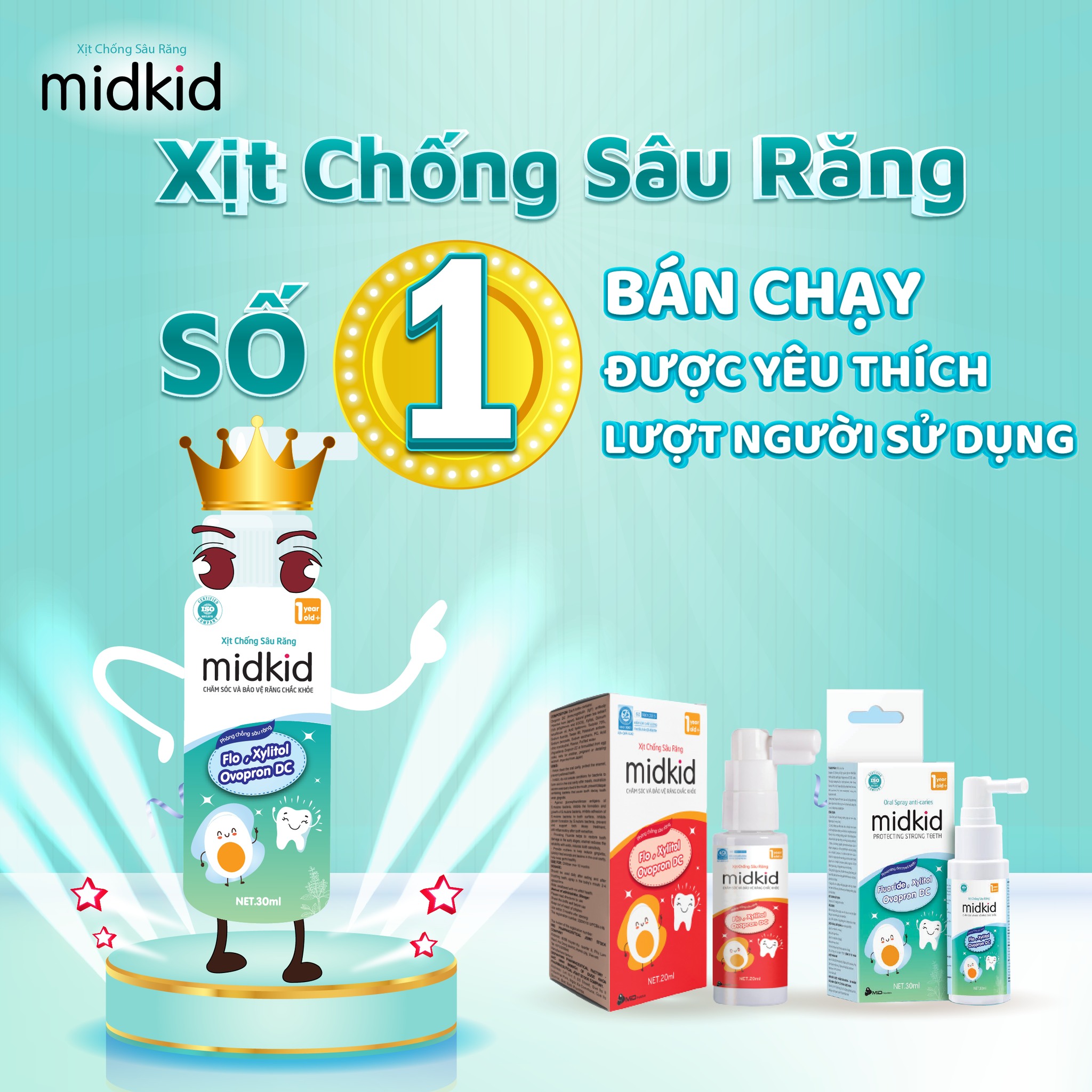- Midkid chứa kháng thể Ovopron DC chiết xuất từ lòng đỏ trứng gà nhập khẩu từ Nhật Bản (chuyên giao độc quyền tại Việt Nam)