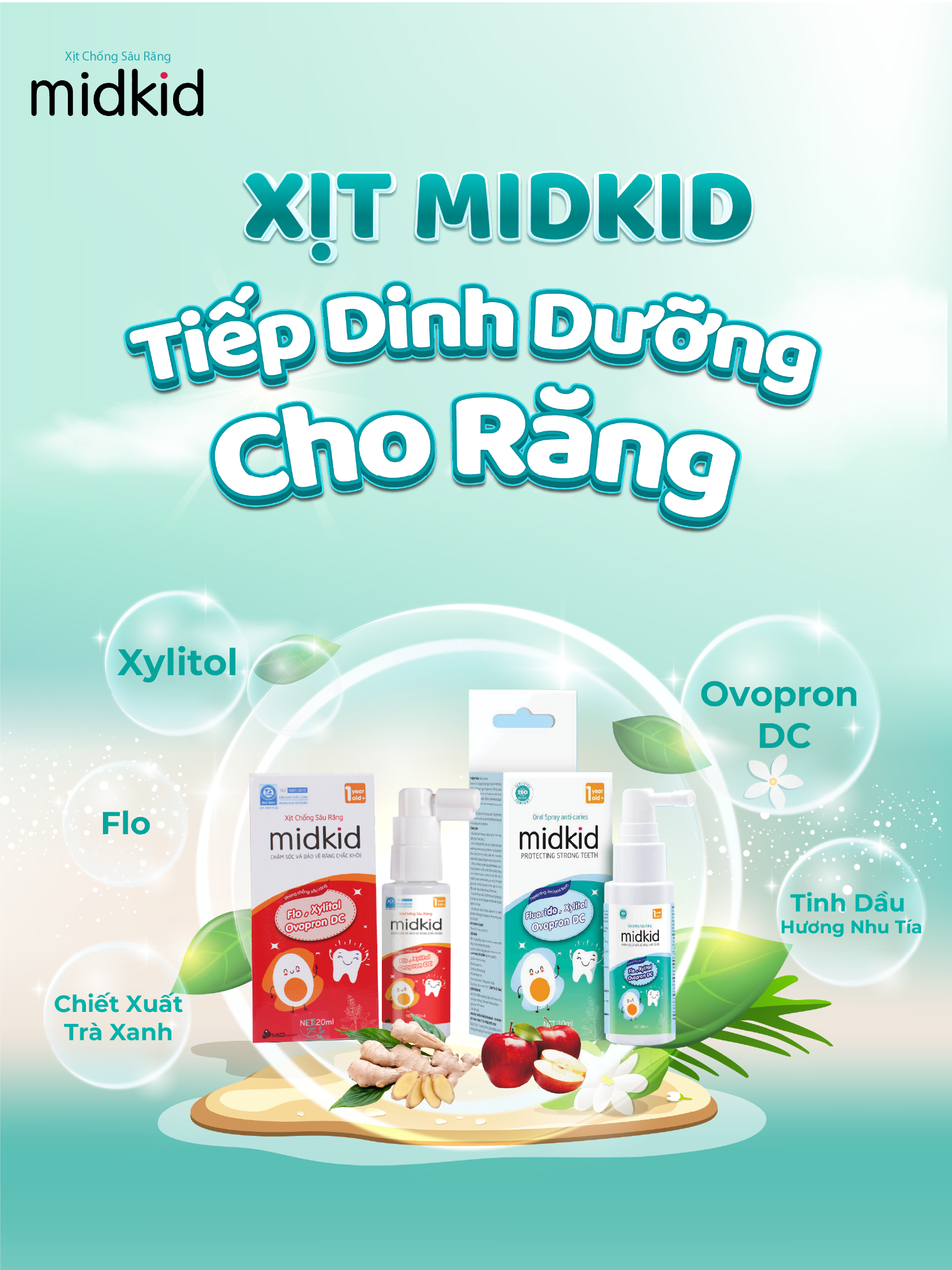Xịt chống sâu răng MIDKID chính hãng vị táo 20ml nuốt được cho bé từ 1 tuổi giúp bảo vệ và làm sạch răng, ngừa mảng bám