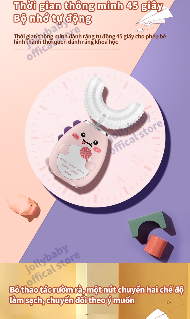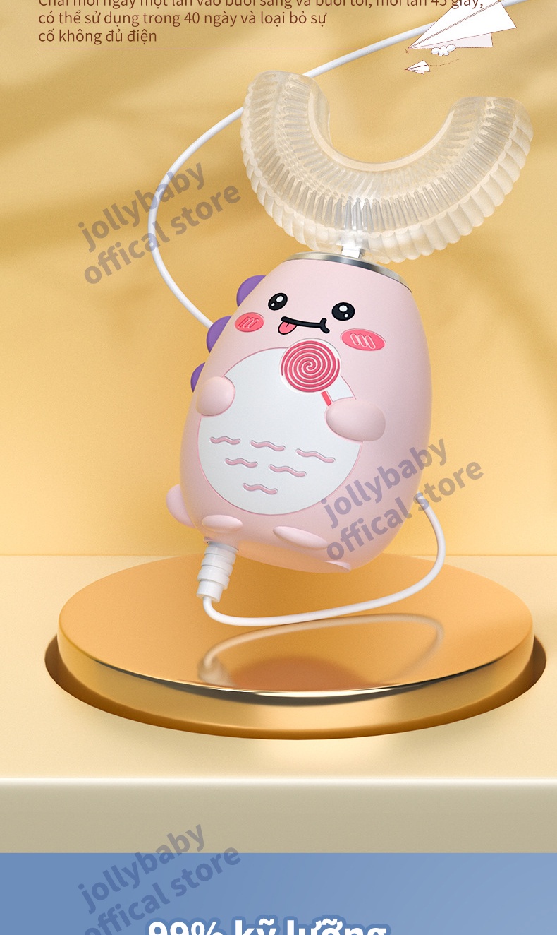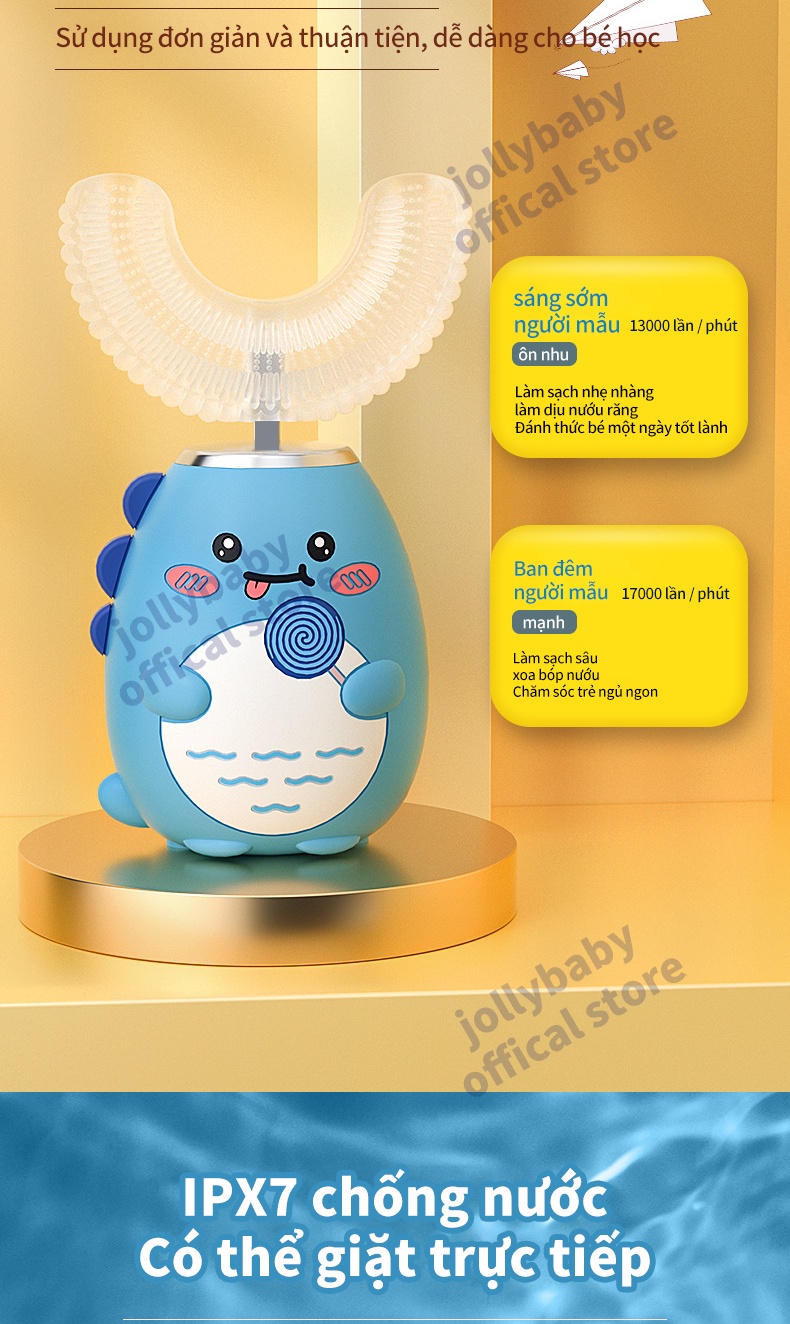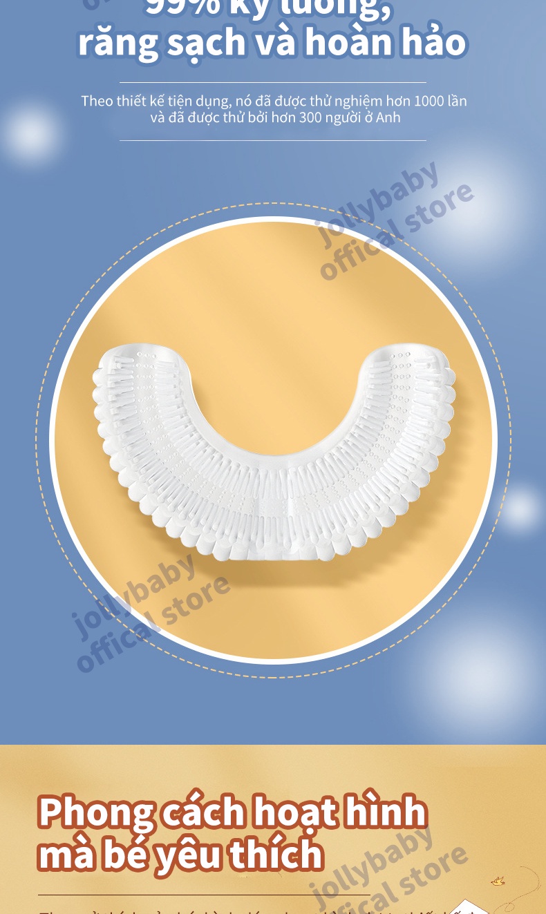 Jollybaby Bàn chải đánh răng điện hình chữ U của trẻ em siêu âm rung động hoàn toàn tự động không thấm nước và có thể sạc lại đầu bàn chải silicone phù hợp cho trẻ sơ sinh 3-12 tuổi