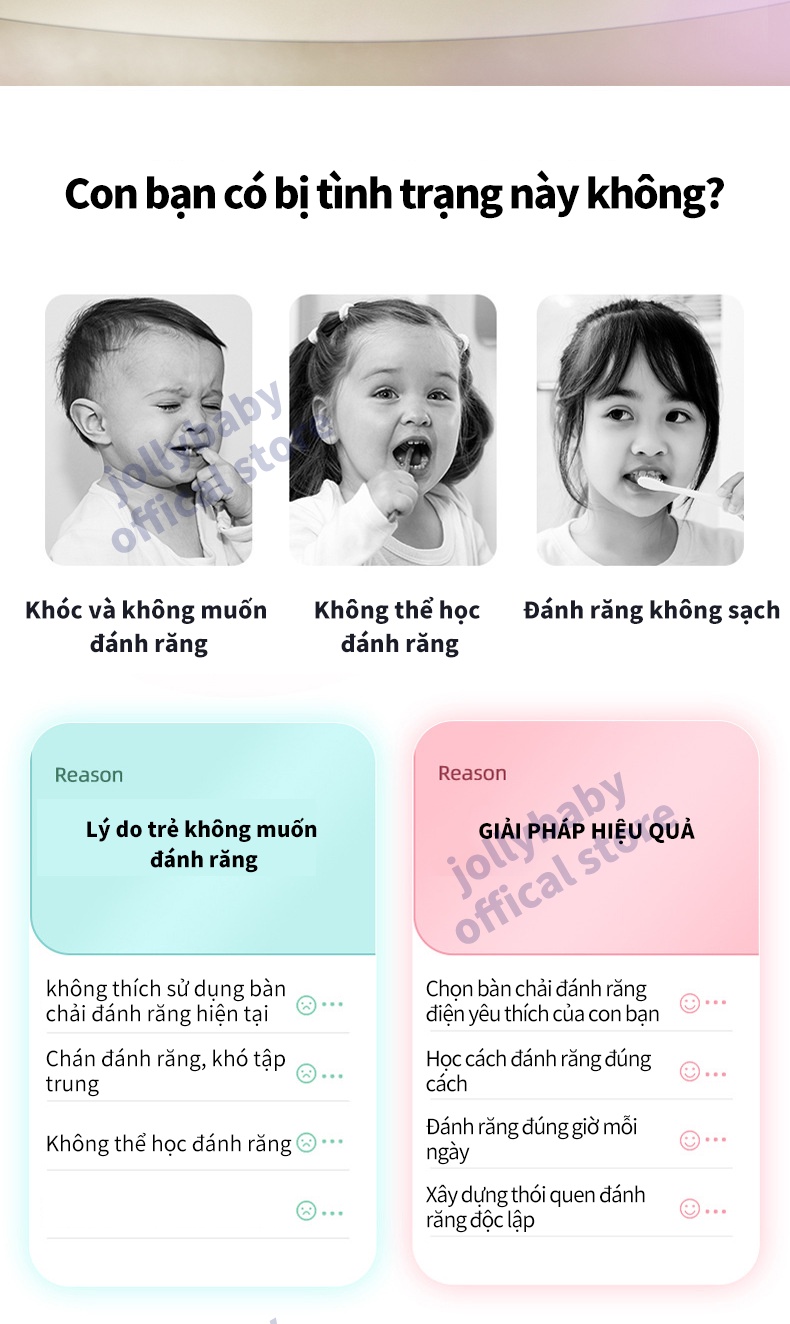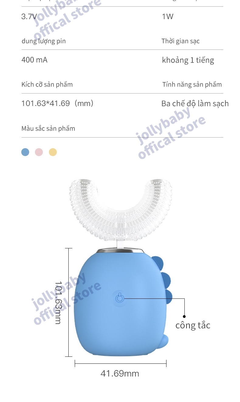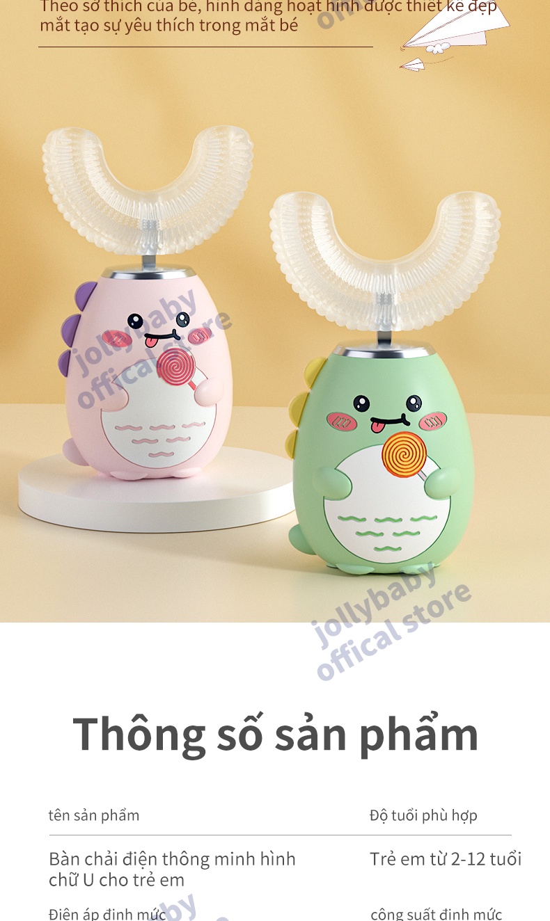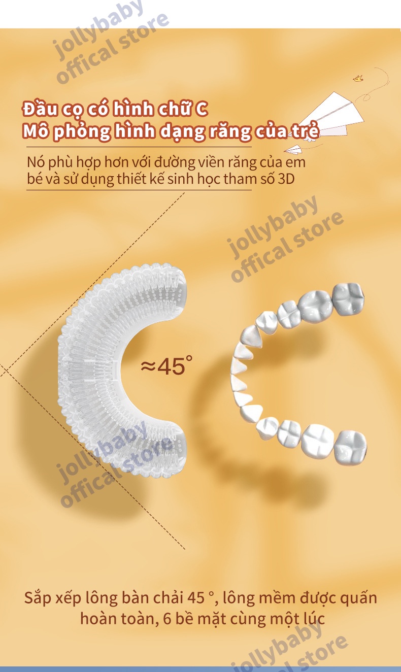 Jollybaby Bàn chải đánh răng điện hình chữ U của trẻ em siêu âm rung động hoàn toàn tự động không thấm nước và có thể sạc lại đầu bàn chải silicone phù hợp cho trẻ sơ sinh 3-12 tuổi
