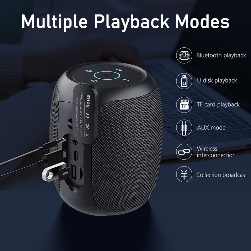 Loa bluetooth không dây ZEALOT TWS âm thanh nổi và âm trầm mạnh mẽ hỗ trợ thẻ nhớ Micro SD AUX USB nhỏ gọn
