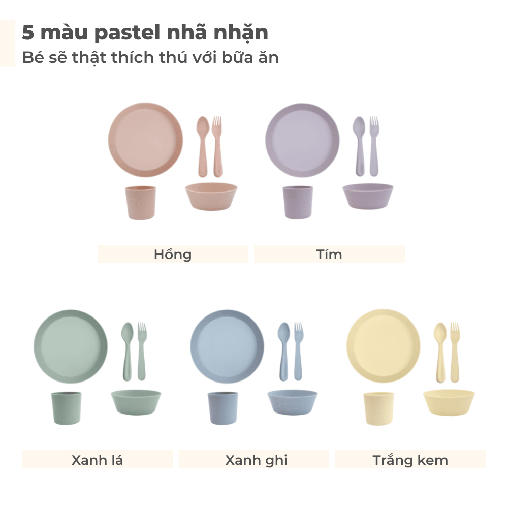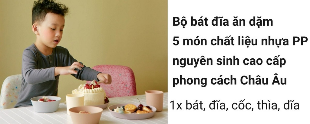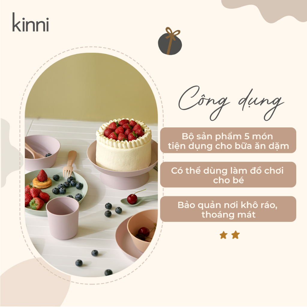 Bộ bát ăn dặm KINNI 5 món chống bám dầu mỡ, nhựa nguyên sinh cao cấp, thiết kế phong cách Châu Âu, an toàn cho bé