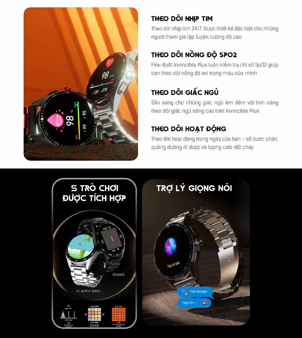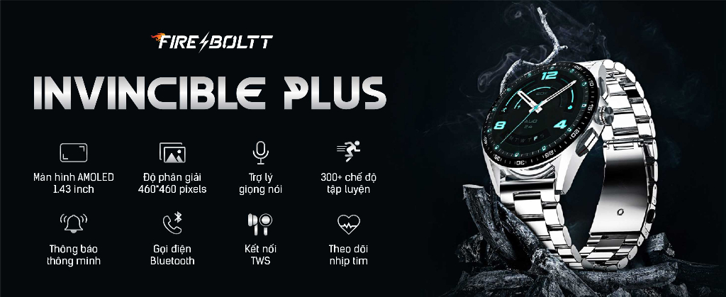 Đồng hồ thông minh FireBoltt Invincible Plus - Hãng phân phối chính thức | Màn AMOLED | Nghe gọi | TWS