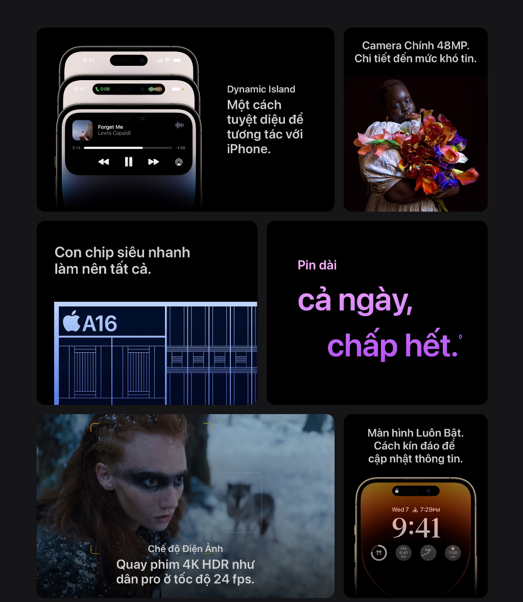 Điện thoại iPhone 14 Pro Max sở hữu thiết kế nhỏ gọn cho khả năng cầm nắm thoải mái. Về thông số màn hình, điện thoại được trang bị màn hình có độ phân giải 2556 x 1179 pixel và mật độ điểm ảnh 2556 x 1179 pixel mang lại khả năng hiển thị ấn tượng.Điện thoại được trang bị màn hình Dynamic Island siêu ấn tượng với khả năng tuy biến thành nhiều dạng theo điều khiển của người dùng. Nhờ đó người dùng có thể theo dõi và hiển thị nhanh các thông tin như cuộc gọi, chỉ đường, hẹn giờ,...Trên điện thoại iPhone 14 Pro Max, lần đầu Apple trang bị cho sản phẩm của mình camera cảm biến lớn. Theo đó, thiết bị đã được nâng cấp camera chính lên độ phân giải 48MP, kết hợp công ngệ pixel-pinning hỗ trợ nâng cao khả năng chụp hình trong điều kiện thiếu sáng.Điện thoại được trang bị viên pin dung lượng lớn cùng con chip Apple A16, thiết bị mang lại thời gian phát video trực tuyến lên tới 20 giờ hoặc 75 giờ phát nhạc.Bộ sản phẩm bao gồm: • Điện thoại • Dây sạc• HDSD Bảo hành điện tử 12 tháng.Thông tin bảo hành:Bảo hành: 12 tháng kể từ ngày kích hoạt sản phẩm.Kích hoạt bảo hành tại: https://checkcoverage.apple.com/vn/en/Hướng dẫn kiểm tra địa điểm bảo hành gần nhất:Bước 1: Truy cập vào đường link https://getsupport.apple.com/?caller=grl&locale=en_VN Bước 2: Chọn sản phẩm.Bước 3: Điền Apple ID, nhập mật khẩu.Sau khi hoàn tất, hệ thống sẽ gợi ý những trung tâm bảo hành gần nhất.Bộ sản phẩm bao gồm: • Điện thoại • Dây sạc• HDSD Bảo hành điện tử 12 tháng.Thông tin bảo hành:Bảo hành: 12 tháng kể từ ngày kích hoạt sản phẩm.Kích hoạt bảo hành tại: https://checkcoverage.apple.com/vn/en/Hướng dẫn kiểm tra địa điểm bảo hành gần nhất:Bước 1: Truy cập vào đường link https://getsupport.apple.com/?caller=grl&locale=en_VN Bước 2: Chọn sản phẩm.Bước 3: Điền Apple ID, nhập mật khẩu.Sau khi hoàn tất, hệ thống sẽ gợi ý những trung tâm bảo hành gần nhất.Tại Việt Nam, về chính sách bảo hành và đổi trả của Apple, "sẽ được áp dụng chung" theo các điều khoản được liệt kê dưới đây:1) Chính sách chung: https://www.apple.com/legal/warranty/products/warranty-rest-of-apac-vietnamese.html2) Chính sách cho phụ kiện: https://www.apple.com/legal/warranty/products/accessory-warranty-vietnam.html3) Các trung tâm bảo hành Apple ủy quyền tại Việt Nam: https://getsupport.apple.com/repair-locations?locale=vi_VNQúy khách vui lòng đọc kỹ hướng dẫn và quy định trên các trang được Apple công bố công khai, Shop chỉ có thể hỗ trợ theo đúng chính sách được đăng công khai của thương hiệu Apple tại Việt Nam,Bài viết tham khảo chính sách hỗ trợ của nhà phân phối tiêu biểu:https://synnexfpt.com/bao-hanh/chinh-sach-bao-hanh/?agency-group=1&agency-slug=san-pham-apple Để thuận tiện hơn trong việc xử lý khiếu nại, đơn hàng của Brand Apple thường có giá trị cao, Qúy khách mua hàng vui lòng quay lại Clip khui mở kiện hàng (khách quan nhất có thể, đủ 6 mặt) giúp Shopee có thêm căn cứ để làm việc với các bên và đẩy nhanh tiến độ xử lý giúp Qúy khách mua hàng.
