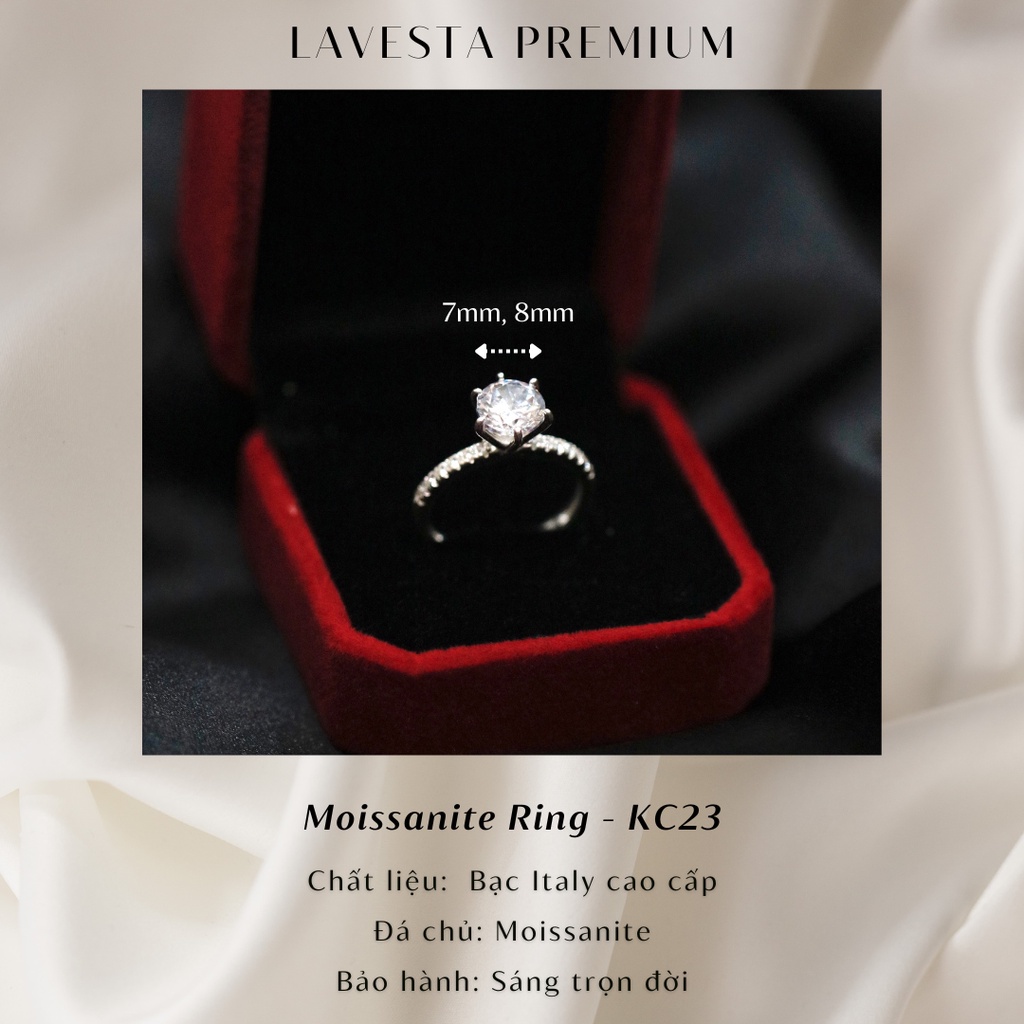 Nhẫn nữ kim cương Moissanite 7 ly, 8 ly kiểm định GRA Lavesta mặt tròn thanh lịch, sang trọng KC23THÔNG TIN SẢN PHẨM- Xuất xứ nhẫn bạc nữ: Việt Nam- Chất liệu nhẫn: Bạc Ý cao cấp - Bảo hành đánh sáng trọn đời- Đá chủ: Kim cương nhân tạo Moissanite 7-8 ly có kiểu cắt giác sang trọng chuẩn kim cương: 8 trái tim và 8 mũi tên mang đến vẻ đẹp ĐẲNG CẤP và TINH TẾ rất thích hợp để làm quà tặng cầu hôn, quà tặng bạn gái.+ Có đặc tính GIỐNG HỆT kim cương thiên nhiên lên đến 90%+ Có hiệu ứng với bút thử kim cương lên vạch ĐỎ+ Có độ cứng 9,5 so với kim cương là 10+ Có chất lượng nước: D+ Có độ lửa rất mạnh - HƠN cả kim cương thiên nhiên