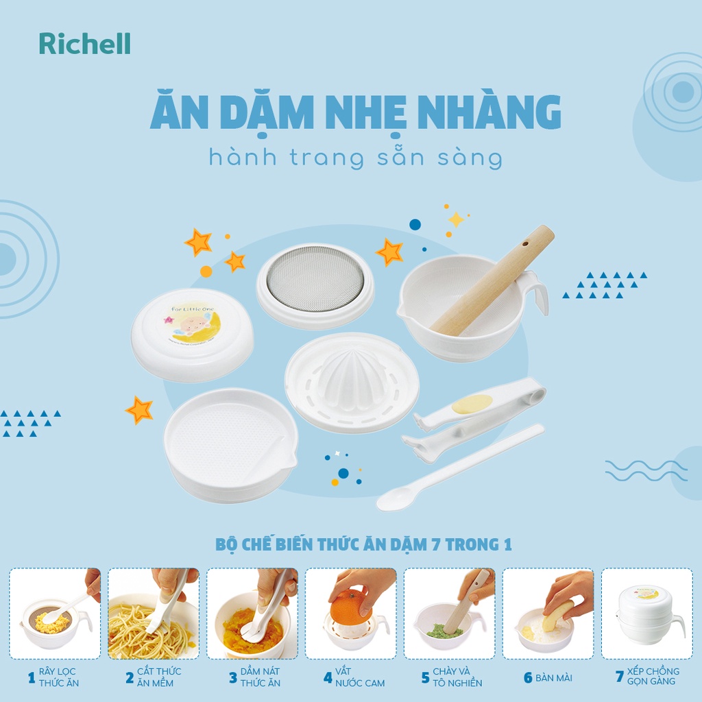 Bộ dụng cụ chế biến ăn dặm kiểu Nhật Richell Nhật Bản | Baby
