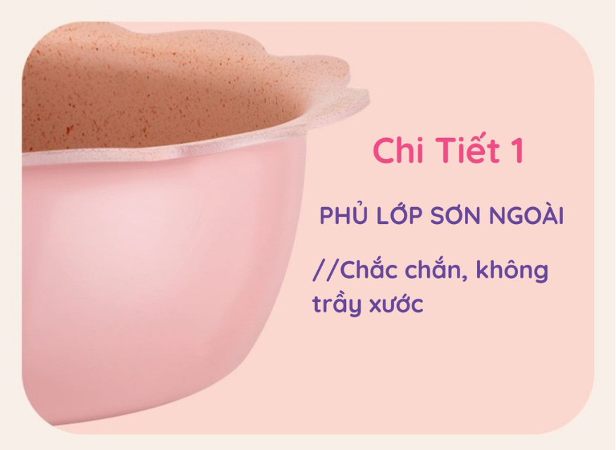 - Thiết kế 5 lớp với bề mặt lòng nồi là đá hoa cương chống trầy xước, lớp chống dính với độ bền cao, lớp corundum trắng chống mài mòn, lớp phủ chống chịu nhiệt độ cao...