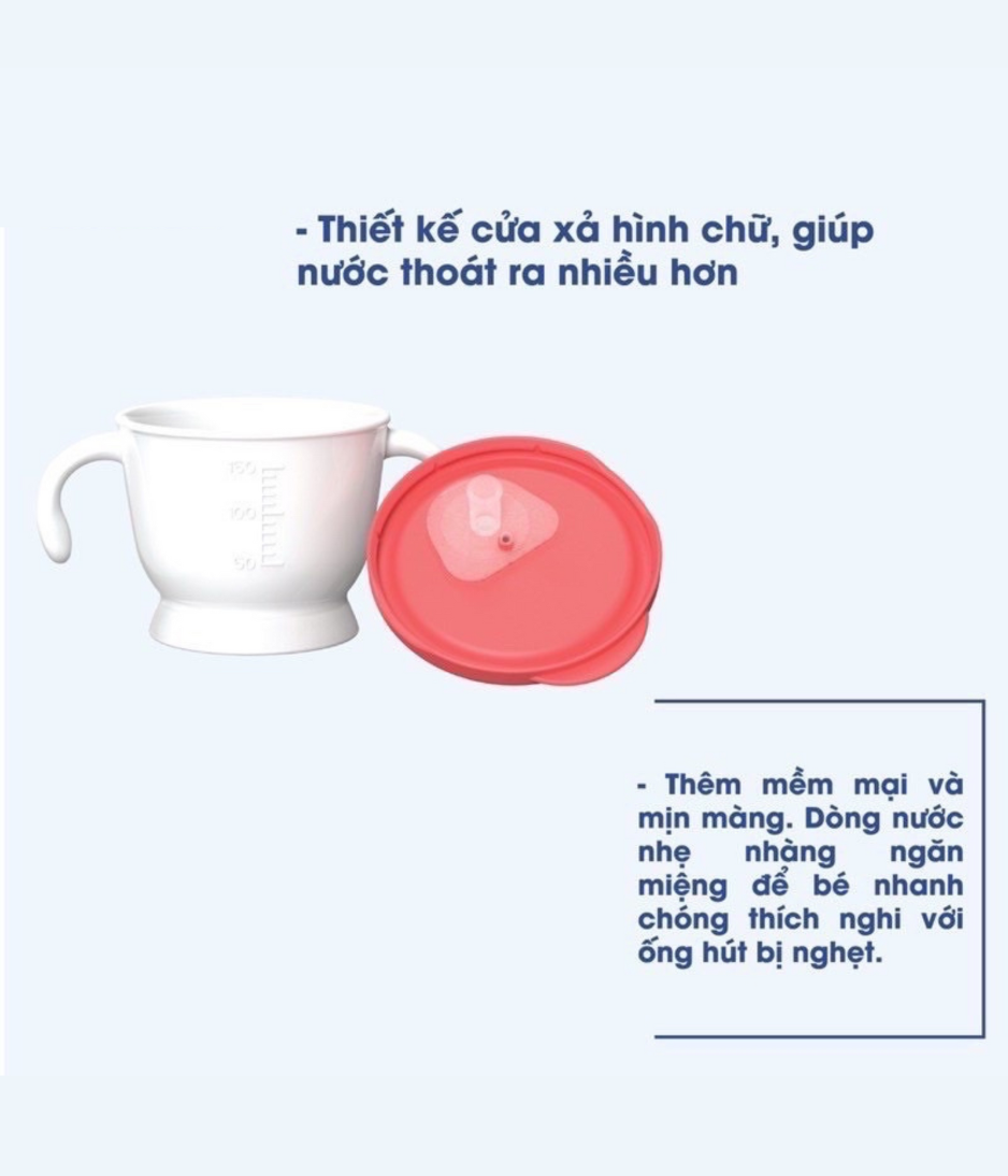 - Cốc tập uống nước có cơ chế chống sặc đảm bảo cho bé không bị sặc khi uống