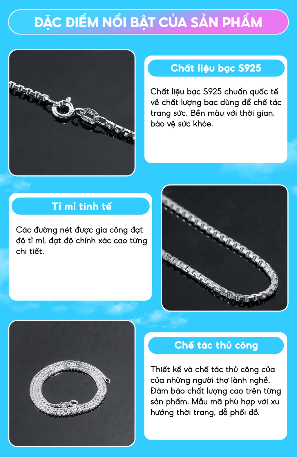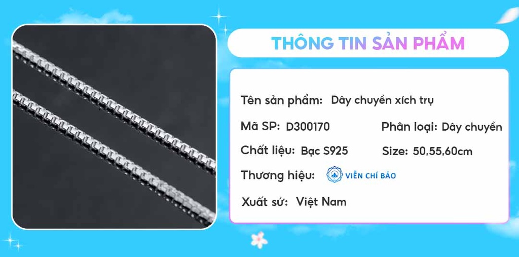 ? TẠI SAO NÊN MUA HÀNG TẠI TRANG SỨC VIỄN CHÍ BẢO????--------------------------------------------------------------------------✅ ĐỀN BÙ GẤP 10 LẦN nếu phát hiện không phải bạc hoặc bạc không đủ tiêu chuẩn. Viễn Chí Bảo cam kết bằng văn bản và có giấy tờ đảm bảo vàng bạc cho mọi sản phẩm vàng bạc trang sức.✅ BẢO HÀNH TRỌN ĐỜI: Bảo hành hỗ trợ làm sạch đánh sáng sản phẩm trọn đời tất cả các sản phẩm của Viễn Chí Bảo.✅ CỬA HÀNG UY TÍN: Showroom bán hàng bạc và trang sức thuộc TOP lớn nhất Hà Nội (cứ search google Viễn Chí Bảo Xã Đàn là ra, tìm biển hiệu vàng bạc màu xanh to nhất đường Xã Đàn)Không phải các gian hàng chỉ bán online không có đ. ị .a c,h,ỉ cửa hàng không biết chỗ nào mà bảo hành. Hotline 24/7 Hỗ trợ bảo hành toàn quốc, tất cả các ngày trong tuần (kể cả Lễ, Tết)✅GIAN MALL CHÍNH HÃNG: Đảm Bảo trách nhiệm cao nhất với mọi đơn hàng, mọi sản phẩm. Thương hiệu Viễn Chí Bảo là thương hiệu được Cục sở hữu trí tuệ bảo hộ. Mua ở Viễn Chí Bảo là mua được sự yên tâm.----------------------------------------------------------------------? THÔNG TIN SẢN PHẨM: DÂY CHUYỀN BẠC NAM – VÒNG CỔ NAM VIỄN CHÍ BẢO- Chất liệu: Bạc chuẩn 925 - Bộ sản phẩm gồm: 1 chiếc dây chuyền- Kiểu dáng: Thiết kế dây chuyền bạc nam tinh tế sắc sảo, dây chuyền nam mẫu mã mới nhất theo Trend !- Sản xuất: Vòng cổ bạc nam được sản xuất trực tiếp tại xưởng Việt Nam hoặc nhập khẩu? CHÍNH SÁCH BÁN HÀNG VÀ BẢO HÀNH - Về sản phẩm: GIAN HÀNG SHOPEE - TRANG SỨC BẠC VIỄN CHÍ BẢO cam kết cả về CHẤT LIỆU cũng như KIỂU DÁNG của dây chuyền nam(giống mô tả sản phẩm, giống ảnh minh hoạ) - Về mẫu mã: Nhiều mẫu dây chuyền bạc nam, vòng cổ nam đẹp, phù hợp với mọi lứa tuổi. Kiểu dáng dây chuyền nam sang trọng, trẻ trung, theo trend và vô cùng cuốn hút. - Hỗ trợ đổi trả NHANH CHÓNG trong 7 ngày kể từ ngày nhận hàng nếu lỗi do nhà sản xuất (đứt gãy, rơi đá, không giống ảnh, sai sản phẩm) - Tư vấn hỗ trợ 24/24 khi quý khách hàng có thắc mắc cứ ib hoặc liên hệ hotline của shop.- Khách hàng cũ: Mua lần thứ 2 trở đi sẽ được nhận mã giảm giá của shop ❗️❗️❗️ LƯU Ý KHI SỬ DỤNG CÁC SẢN PHẨM- Khách hàng tránh hiểu nhầm Bạc Chuẩn sẽ không bị đen xỉn- Bạc ngoài làm trang sức còn khử độc tố rất tốt cho cơ thể. Bạc được sử dụng làm đũa thử độc tố, lá bạc đánh cảm gió... khi gặp độc tố bạc sẽ chuyển màu đen xỉn.- Khi bạc bị xỉn màu bạn có thể tự làm sáng lại bạc tại nhà theo nhiều cách đơn giản hoặc gửi về shop miễn phí làm sáng lại bạc cho khách hàng nhé.- Khi không đeo, nên để sản phẩm trong túi zip, thêm 1 miếng bông gòn để hút ẩm tốt hơn.❗️❗️❗️LƯU Ý TRƯỚC KHI MUA HÀNG:Do màn hình và điều kiện ánh sáng khác nhau lúc chụp ảnh và màn hình hiển thị khác nhau nên màu sắc thực tế của sản phẩm của Viễn Chí Bảo có thể chênh lệch khoảng 5%. Tuy nhiên độ lệch màu ít giữa sản phẩm thực tế và hình ảnh minh họa sẽ không gây ảnh hưởng đến vấn đề chất lượng nên bạn yên tâm đặt hàng.Hàng giá rẻ sẽ có chất lượng kém hơn, chất lượng gia công kém tinh xảo hơn, hàm lượng bạc có thể bị pha trộn không đạt tiêu chuẩn ảnh hưởng đến thẩm mỹ và sức khỏe người sử dụng. Trong khi đó sản phẩm của Viễn Chí Bảo đều được làm từ bạc tiêu chuẩn 925 hoặc bạc thái 999, xin bạn đừng so sánh các sản phẩm mỹ ký hoặc bạc kém chất lượng với sản phẩm chất lượng cao của Viễn Chí Bảo sản xuất.Trong trường hợp nhận được các sản phẩm có vấn đề không đáng kể như một vài vết xước nhỏ đó là điều khó tránh khỏi trong quá trình sản xuất, vận chuyển. Nếu có lưu ý thêm gì về sản phẩm thì hãy nhắn tin ngay với Viễn Chí Bảo.Sản phẩm Bạc Thái của Viễn Chí Bảo gia công tinh xảo hơn bạc thường và sử dụng công nghệ oxy hoá công nghệ cao mới có màu đen đặc trưng của bạc Thái (Nhờ đó có thể thể hiện được các đường nét tinh xảo của sản phẩm, phong cách hơn, cá tính hơn). Vì thế giá thành sản phẩm bạc Thái luôn cao hơn bạc Ý và bạc Ta 2-3 lần thậm chí nhiều hơn nếu sản phẩm phức tạp và độ khó cao hơn. Bạc Thái và Bạc Ý (bạc trắng) có giá trị thẩm mỹ theo nhu cầu khác nhau, và có giá trị của riêng mình. Nếu bạn mong muốn mua để bán lại bạc được giá thì cân nhắc xin đừng bấm mua, bạn có thể mua bạc trắng thường, hoặc thỏi bạc sẽ lựa chọn tốt hơn.?Ấn theo dõi để ủng hộ shop và tham khảo các sản phẩm mới của shop, VIỄN CHÍ BẢO hân hạnh được đồng hành và phục vụ quý khách!#day#chuyen#bac#vong#co#nu#daychuyen#vongco#daychuyenbac#daychuyennu#bac925#namda#daychuyencaocap#phu#kien#thoi#trang#phukienthoitrang#nhan#day#lac#khuyen#kieng#trangsuc#daychuyenu#vongconu#daychuyennam#nam#daychuyennam#daychuyenbacnam#bacy#dongian#basic