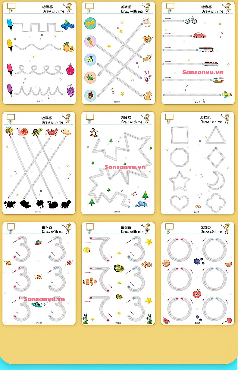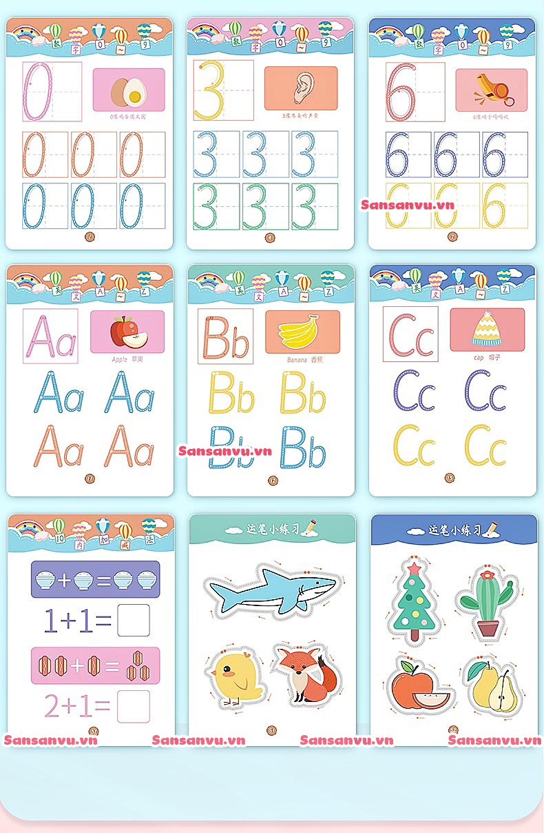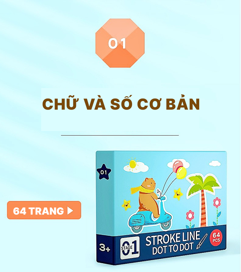 2. THÔNG TIN VỀ Tập tô vẽ viết xóa được 64 trangSP 64 trang, 2 tuổi trở lên: Hình vẽ, chữ, số - Tặng thêm: 6 bút dạ + 1 miếng mút để xóa cho mỗi quyển - Hàng thuộc loại cao cấp, chất liệu đẹp, hình ảnh rõ ràng, sắc nét - Những trang sách như những chiếc bảng cứng cho bé vẽ lên rồi xóa đi, dùng được rất nhiều lần - Chất liệu: Giấy tráng dễ lau sạch, gồm 4 lớp: ngoài cùng là màng mờ chống thấm nước đến 2 lớp bìa cứng dày, màng Plastic chống thấm nước - Trang sách cứng cáp, góc cạnh gọn gàng- Kích thước: 22,5x30x3,6cm - Kích thước trang: 29x22 cm3. ƯU ĐIỂM NỔI BẬT CỦA Tập tô vẽ viết xóa được 64 trang- Những cuốn sách này vừa là đồ dùng học tập, vừa là đồ chơi giúp bé đam mê học tập nhiều hơn, giúp bé: - Nâng cao khả năng tri giác, nhận thức qua việc nối ghép các hình vẽ - Giúp bé phát triển tư duy logic và sáng tạo - Bé sẽ học tiếng Anh nhanh hơn thông qua hình ảnh.