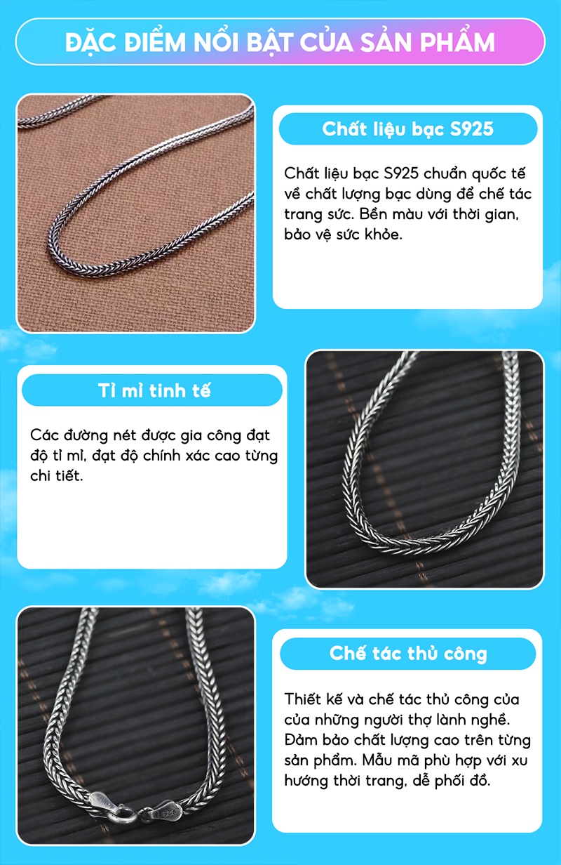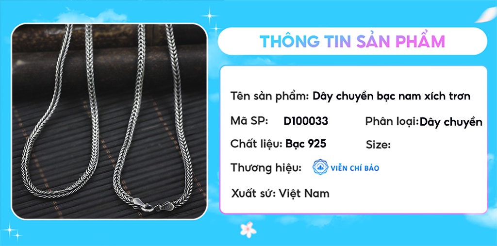 ? TẠI SAO NÊN MUA HÀNG TẠI TRANG SỨC VIỄN CHÍ BẢO????--------------------------------------------------------------------------✅ ĐỀN BÙ GẤP 10 LẦN nếu phát hiện không phải bạc hoặc bạc không đủ tiêu chuẩn. Viễn Chí Bảo cam kết bằng văn bản và có giấy tờ đảm bảo vàng bạc cho mọi sản phẩm vàng bạc trang sức.✅ BẢO HÀNH TRỌN ĐỜI: Bảo hành hỗ trợ làm sạch đánh sáng sản phẩm trọn đời tất cả các sản phẩm của Viễn Chí Bảo.✅ CỬA HÀNG UY TÍN: Showroom bán hàng bạc và trang sức thuộc top lớn nhất Hà Nội (cứ search google Viễn Chí Bảo Xã Đàn là ra, tìm biển hiệu vàng bạc màu xanh to nhất đường Xã Đàn)Không phải các gian hàng chỉ bán online không có đ. ị .a c,h,ỉ cửa hàng không biết chỗ nào mà bảo hành. Hotline 24/7 Hỗ trợ bảo hành toàn quốc, tất cả các ngày trong tuần (kể cả lễ tết)✅GIAN MALL CHÍNH HÃNG: Đảm Bảo trách nhiệm cao nhất với mọi đơn hàng, mọi sản phẩm. Thương hiệu Viễn Chí Bảo là thương hiệu được Cục sở hữu trí tuệ bảo hộ. Mua ở Viễn Chí Bảo là mua được sự yên tâm.----------------------------------------------------------------------? THÔNG TIN SẢN PHẨM : DÂY CHUYỀN BẠC NAM – VÒNG CỔ NAM VIỄN CHÍ BẢO- Chất Liệu : Bạc Thái chuẩn - Bộ sản phẩm gồm: 1 chiếc dây chuyền- Kiểu Dáng : thiết kế dây chuyền bạc nam tinh tế sắc sảo, dây chuyền nam mẫu mã mới nhất theo Trend !- Sản Xuất : vòng cổ bạc nam được sản xuất trực tiếp tại xưởng Việt Nam hoặc nhập khẩu? CHÍNH SÁCH BÁN HÀNG VÀ BẢO HÀNH - Về sản phẩm: GIAN HÀNG SHOPEE -TRANG SỨC BẠC VIỄN CHÍ BẢO cam kết cả về CHẤT LIỆU cũng như KIỂU DÁNG của dây chuyền nam(giống mô tả sản phẩm, giống ảnh minh hoạ) - Về mẫu mã : Nhiều mẫu dây chuyền bạc nam, vòng cổ nam đẹp, phù hợp với mọi lứa tuổi. Kiểu dáng dây chuyền nam sang trọng, trẻ trung, theo trend và vô cùng cuốn hút. - Hỗ trợ đổi trả NHANH CHÓNG trong 7 ngày kể từ ngày nhận hàng nếu lỗi do nhà sản xuất ( đứt gãy. rơi đá, không giống ảnh, sai sản phẩm ) - Tư vấn hỗ trợ 24/24 khi quý khách hàng có thắc mắc cứ ib hoặc liên hệ hotline của shop.- Khách hàng cũ : Mua lần thứ 2 trở đi sẽ được nhận mã giảm giá của shop ❗️❗️❗️ LƯU Ý KHI SỬ DỤNG CÁC SẢN PHẨM- Khách hàng tránh hiểu nhầm Bạc Chuẩn sẽ không bị đen xỉn- Bạc ngoài làm trang sức còn khử độc tố rất tốt cho cơ thể. Bạc được sử dụng làm đũa thử độc tố, lá bạc đánh cảm gió... khi gặp độc tố bạc sẽ chuyển màu đen xỉn.- Khi bạc bị xỉn màu bạn có thể tự làm sáng lại bạc tại nhà theo nhiều cách đơn giản hoặc gửi về shop miễn phí làm sáng lại bạc cho khách hàng nhé.- Khi không đeo, nên để sản phẩm trong túi zip, thêm 1 miếng bông gòn để hút ẩm tốt hơn.❗️❗️❗️LƯU Ý KHI TRƯỚC KHI MUA HÀNG:Do màn hình và điều kiện ánh sáng khác nhau lúc chụp ảnh và màn hình hiển thị khác nhau nên màu sắc thực tế của sản phẩm của Viễn Chí Bảo có thể chênh lệch khoảng 5%. Tuy nhiên độ lệch màu ít giữa sản phẩm thực tế và hình ảnh minh họa sẽ không gây ảnh hưởng đến vấn đề chất lượng nên bạn yên tâm đặt hàng.Hàng giá rẻ sẽ có chất lượng kém hơn, chất lượng gia công kém tinh xảo hơn, hàm lượng bạc có thể bị pha trộn không đạt tiêu chuẩn ảnh hưởng đến thẩm mỹ và sức khỏe người sử dụng. Trong khi đó sản phẩm của Viễn Chí Bảo đều được làm từ bạc tiêu chuẩn 925 hoặc bạc thái 999, xin bạn đừng so sánh các sản phẩm mỹ ký hoặc bạc kém chất lượng với sản phẩm chất lượng cao của Viễn Chí Bảo sản xuất.Trong trường hợp nhận được các sản phẩm có vấn đề không đáng kể như một vài vết xước nhỏ đó là điều khó tránh khỏi trong quá trình sản xuất, vận chuyển. Nếu có lưu ý thêm gì về sản phẩm thì hãy nhắn tin ngay với Viễn Chí Bảo.Sản phẩm Bạc Thái của Viễn Chí Bảo gia công tinh xảo hơn bạc thường và sử dụng công nghệ oxy hoá công nghệ cao mới có màu đen đặc trưng của bạc thái (Nhờ đó có thể thể hiện được các đường nét tinh xảo của sản phẩm, phong cách hơn, cá tính hơn). Vì thế giá thành sản phẩm bạc Thái luôn cao hơn bạc ý và bạc ta 2-3 lần thậm chí nhiều hơn nếu sản phẩm phức tạp và độ khó cao hơn. Bạc Thái và Bạc Ý (bạc trắng) có giá trị thẩm mỹ theo nhu cầu khác nhau, và có giá trị của riêng mình. Nếu bạn mong muốn mua để bán lại bạc được giá thì cân nhắc xin đừng bấm mua, bạn có thể mua bạc trắng thường, hoặc thỏi bạc sẽ lựa chọn tốt hơn.?Ấn theo dõi để ủng hộ shop và tham khảo các sản phẩm mới của shop, VIỄN CHÍ BẢO hân hạnh được đồng hành và phục vụ quý khách!#day#chuyen#bac#vong#co#nu#daychuyen#vongco#daychuyenbac#daychuyennu#bac925#namda#daychuyencaocap#phu#kien#thoi#trang#phukienthoitrang#nhan#day#lac#khuyen#kieng#trangsuc#daychuyenu#vongconu#daychuyennam#nam#daychuyennam#daychuyenbacnam#bacy#dongian#basic