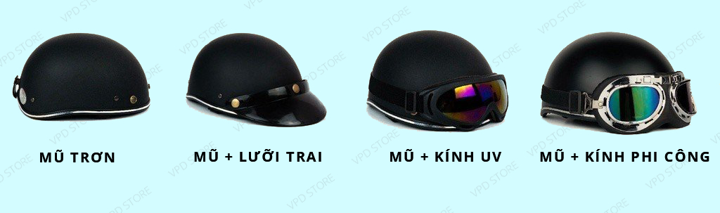 Giới thiệu sản phẩm Mũ bảo hiểm 1/2 đầu kèm kính Phi Công
