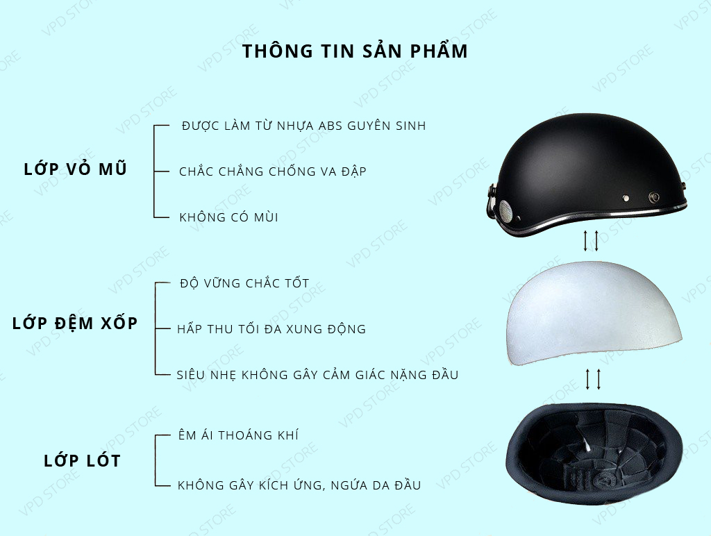 ✔ Mút xốp bên trong dày cứng, vừa vặn bám chặt với phần vỏ giúp triệt tiêu hoàn toàn xung lực mạnh từ bên ngoài tác động vào, giảm chấn hiệu quả tối đa, ôm trọn vòng đầu. Trọng lượng được phân tán đều, không gây cảm giác nặng và đau đầu, tạo cho người đội cảm giác thoải mái và thoáng mái khi sử dụng.