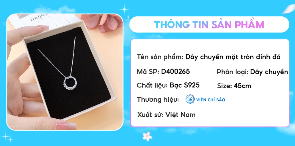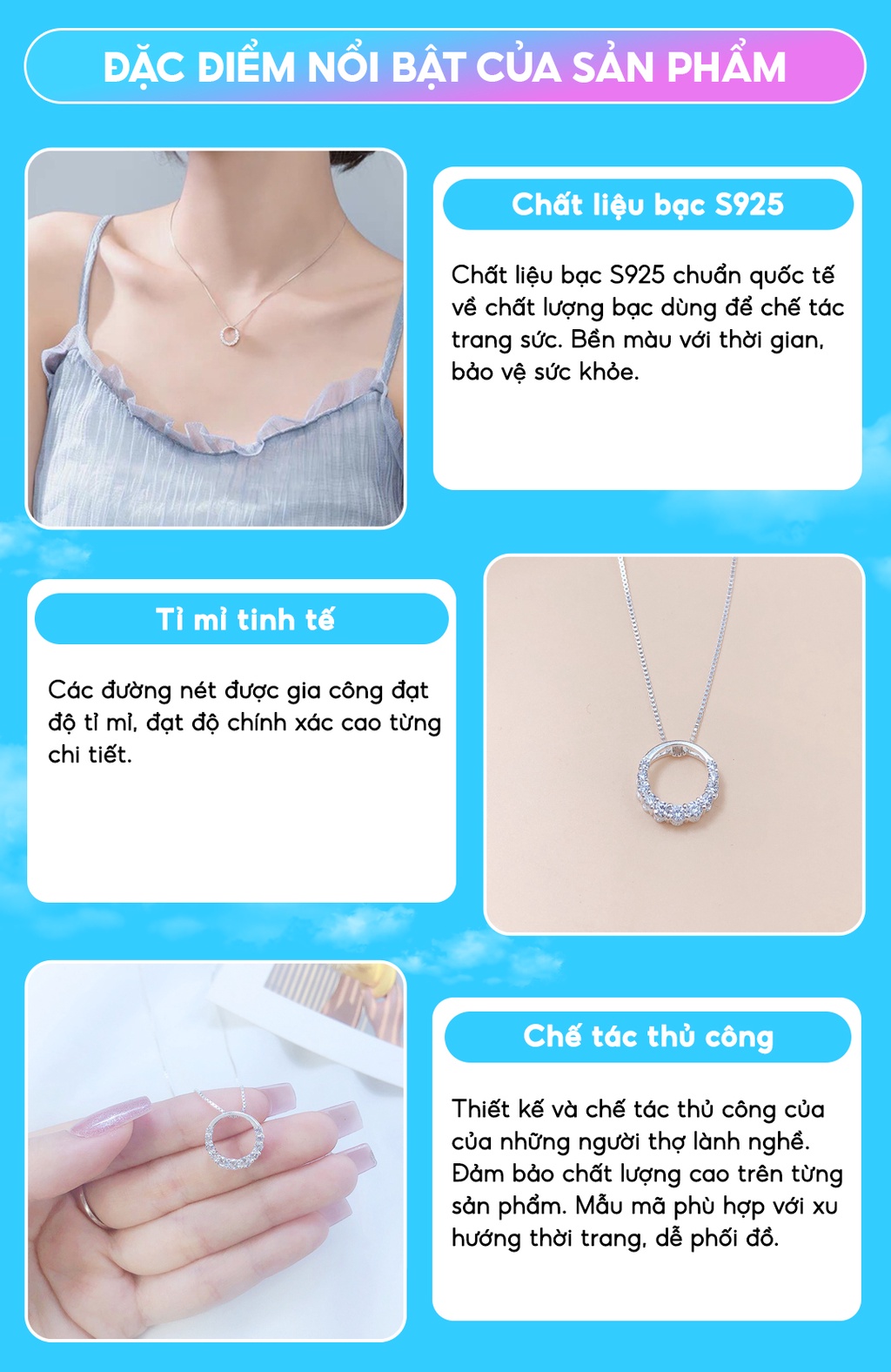 Dây chuyền bạc nữ mặt tròn đính đá sang chảnh chất liệu bạc 925 thời trang phụ kiện trang sức Viễn Chí Bảo D400265