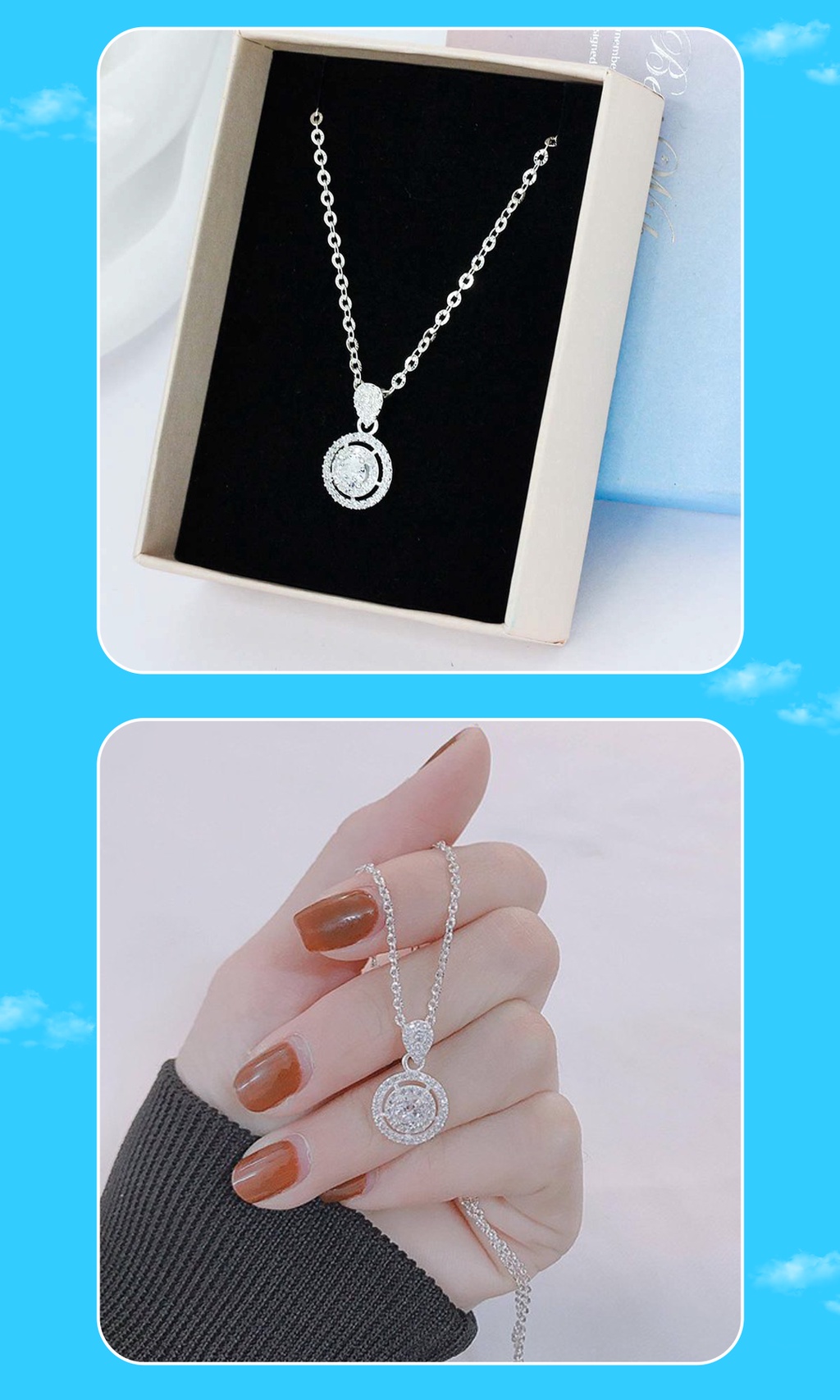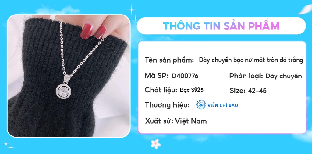 Dây chuyền bạc nữ mặt tròn đá trắng bạc S925 thời trang phụ kiện trang sức nữ Viễn Chí Bảo D400776x