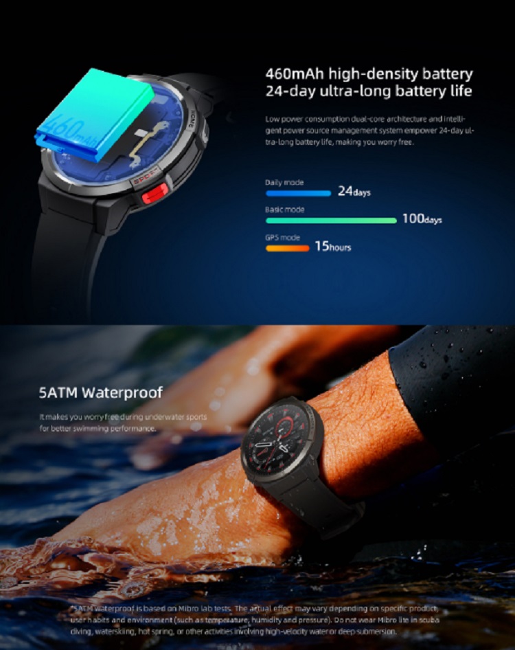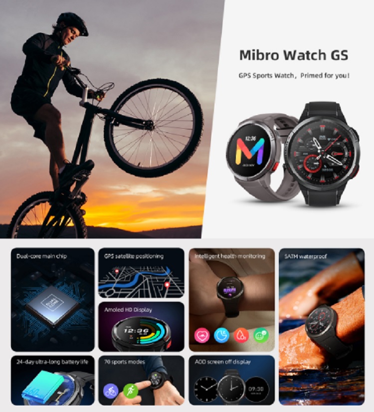 *** THÔNG TIN CHI TIẾT:--Tạo tác đồng hồ thông minh tinh tế, bền bỉĐồng hồ Mibro GS có diện mạo vừa cá tính, hiện đại và phù hợp nhiều lứa tuổi, dây đeo ôm vừa vặn cổ tay, không bị bí với kích thước chiều rộng 22mm, chiều dài mở rộng 260mm ,trọng lượng chỉ 56.5g nhỏ gọn và linh hoạt.Chất liệu mặt kính, khung kim loại và sợ dây đeo sillicon tạo tác nên Mibro GS vẻ đẹp cổ điển và bền bỉ với thời gian--Tạo tác thế giới đầy màu sắc qua màn hình AMOLEDMàn hình siêu-retina AMOLED của Mibro GS sẽ giúp bạn thấy được thế giới đầy màu sắc với hình ảnh sống động. Với màn hình HD AMOLED kích thước 1.43 inch và khả năng điều khiển chip trực tiếp (với PS RAM tích hợp), bạn sẽ nhìn thấy được mọi chi tiết nhỏ nhất với tầm nhìn rõ ràng hơn và rộng hơn kể cả khi đang thể thao ngoài trời.--Hiệu năng vượt trội của Smartwatch Mibro GSVới chip điều khiển chính Bluetooth công nghệ lõi kép kết hợp bộ xử lý đồ họa GPU 2.5D, tốc độ làm mới khung hình max 60Hz, đồng hồ thông minh Mibro GS cho hiệu quả tiêu thụ điện năng thấp, xử lý các tác vụ tốt, tránh tình trạng lag giật.--Đồng hồ thông minh GS theo dõi tình trạng sức khỏeCùng khám phá các chức năng đo lường chỉ số sức khỏe thiết yếu đã được tích hợp trên đồng hồ Mibro GS cụ thể hơn dưới đây:Đo lường nhịp tim: Cảm biến nhịp tim mới thống kê sức khỏe tim mạch trong vòng 24 tiếng đồng hồ.Phép đo CO2, SPO2: Tính năng đo nồng độ Oxy trong máu của Mibro GS giúp người dùng điều chỉnh trạng thái làm việc, nghỉ ngơi ngay lập tức trong trường hợp thiếu oxy.Theo dõi giấc ngủ: Thống kê tần suất chuyển động, giờ ngủ để sắp xếp lịch trình sinh hoạt phù hợp hơn cho một ngày mới tỉnh táo.--Định vị hành trìnhVới định vị vệ tinh GPS, Beidou, GLONASS, GZSS nhanh chóng tìm kiếm vị trí và ghi lại quỹ đạo chuyển động, đồng hồ thông minh Mibro GS khiến hành trình, mỗi cuộc chơi của người dùng trở nên thú vị hơn.--Đồng hồ thông minh hoạt động bền bỉViên pin mật độ cao dung lượng 460mAh với hệ thống quản lý nguồn điện thông minh giúp Mibro có tuổi thọ pin dài, hoạt động tốt tới 24 ngày ở chế độ hàng ngày, 100 ngày nếu ở chế độ cơ bản.--Vật liệu chống thấm nước đạt chuẩnDòng đồng hồ thông minh GS Xtới từ thương hiệu Mibro đã đạt tiêu chuẩn 5ATM về khả năng kháng nước và mồ hôi trong quá trình vận động thể thao ngoài trời của người dùng. Tuy nhiên tính năng này không hỗ trợ với các hoạt động như lặn biển, ngâm suối nước nóng với dòng nước sâu.--Các tiện ích khácNgười dùng có thể tùy chỉnh giao diện mặt đồng hồ mọi lúc mọi nơi với các phong cách thú vị, cá tính hơn. Đặc biệt, đồng hồ thông minh Mibro GS XPAW008 còn hỗ trợ đa dạng các tính năng cơ bản khác như: phát nhạc, lắc để chụp ảnh, cài báo thức, dự báo thời tiết...
