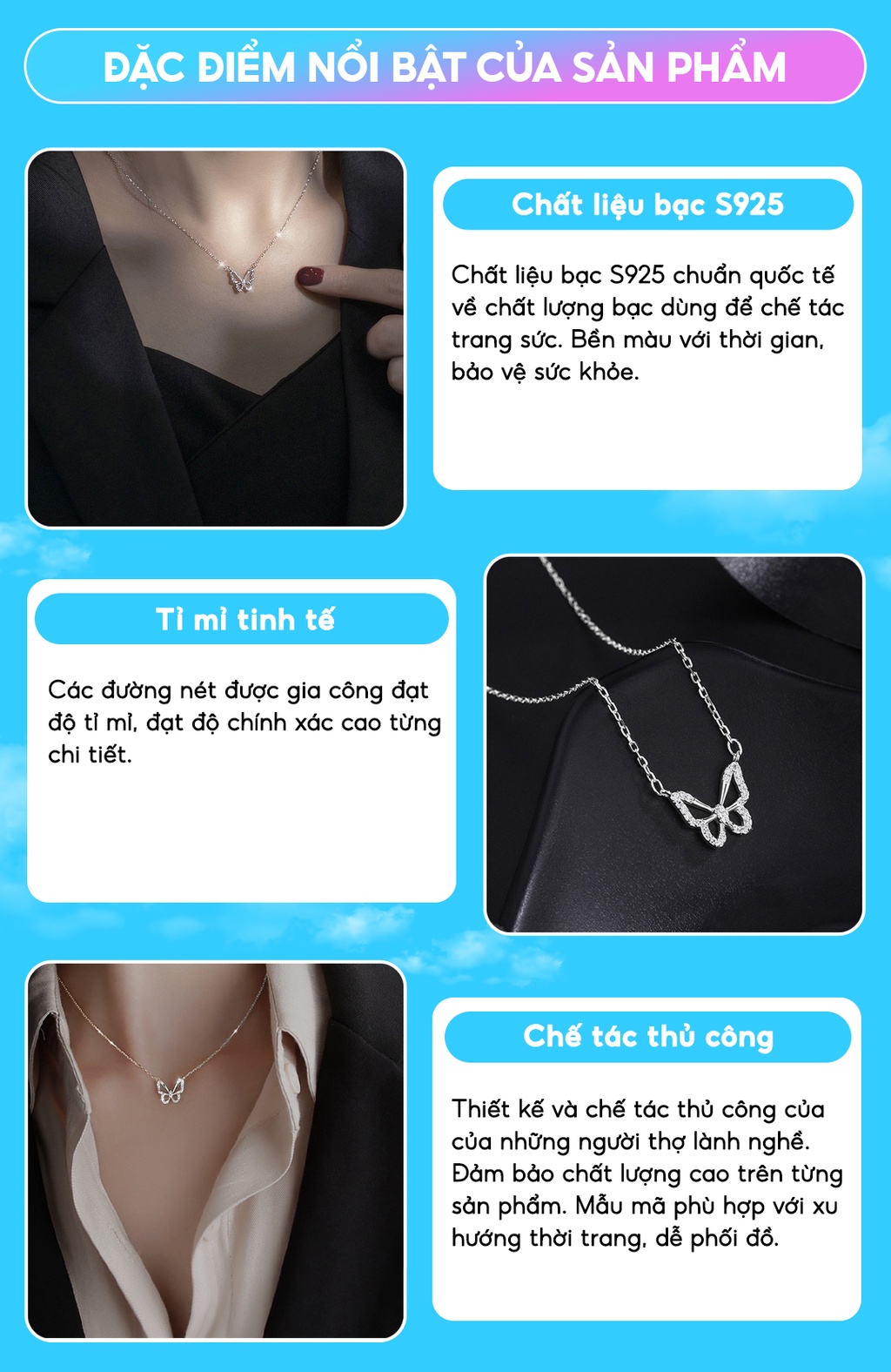 - Kiểu Dáng : thiết kế dây chuyền bạc nữ tinh tế sắc sảo, dây chuyền nữ mẫu mã mới nhất theo Trend !