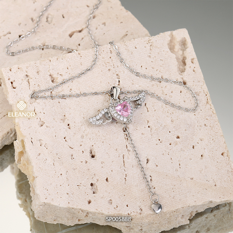 Dây chuyền nữ titan Eleanor Accessories đính đá mặt hình trái tim phụ kiện trang sức 5888