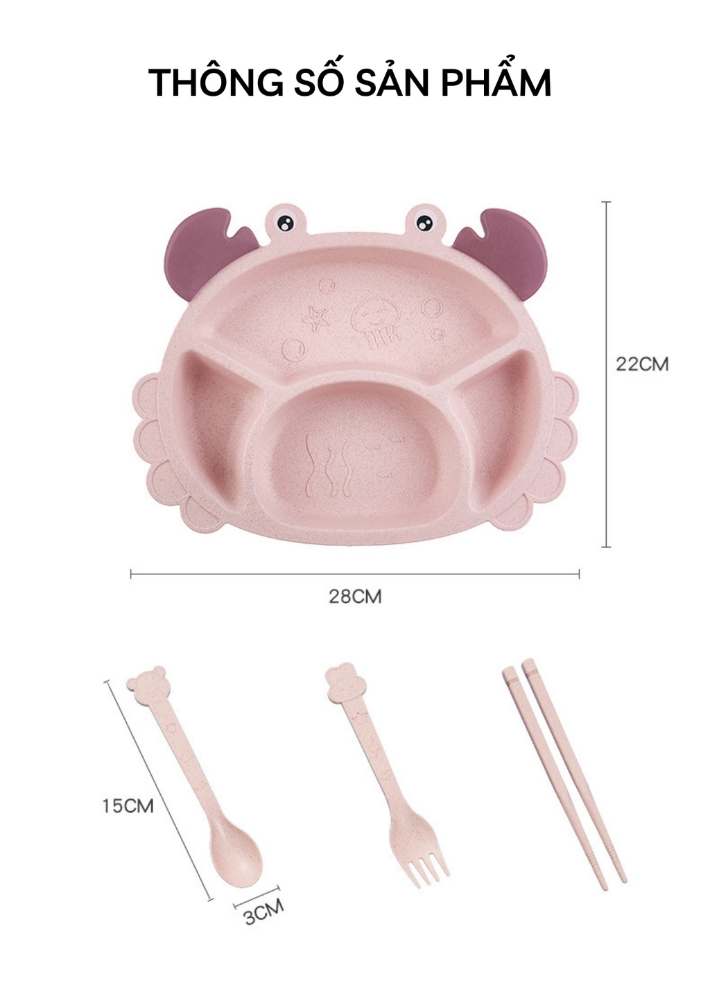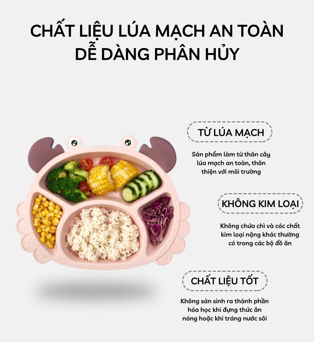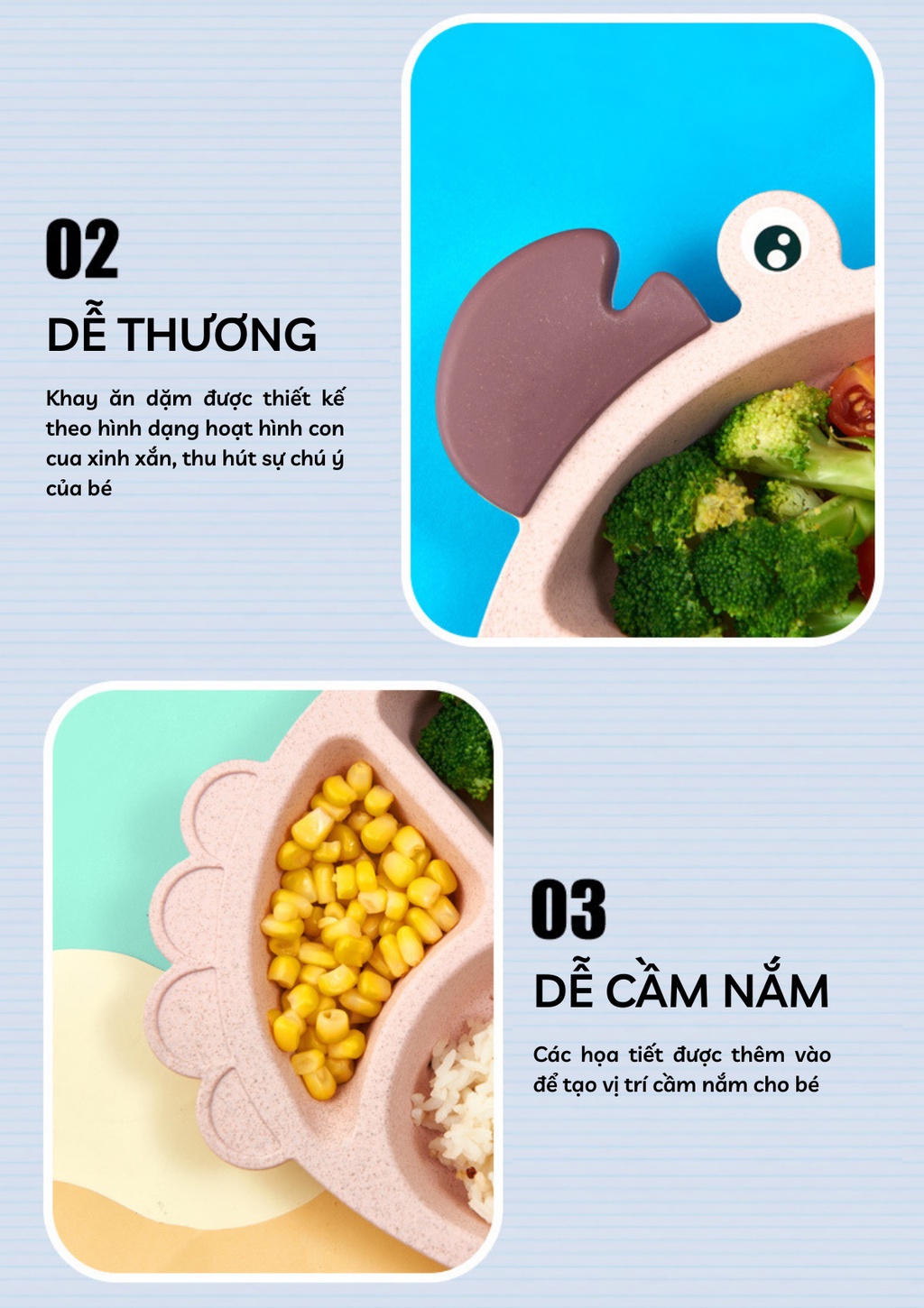 Khay Ăn Dặm Lúa Mạch Kiểu Nhật Cho Bé YOOTA BABY Có Chia Ngăn Hình Cua Ngộ Nghĩnh Kèm Thìa Dĩa