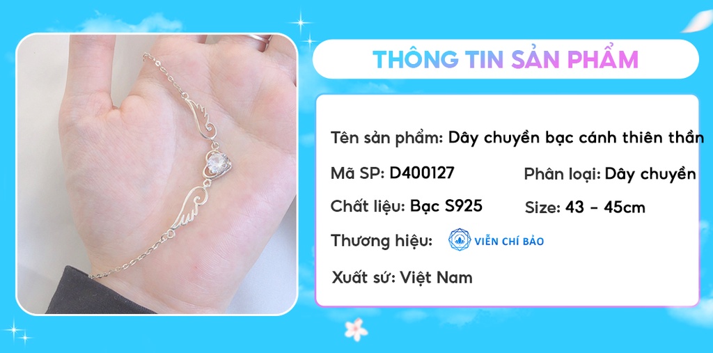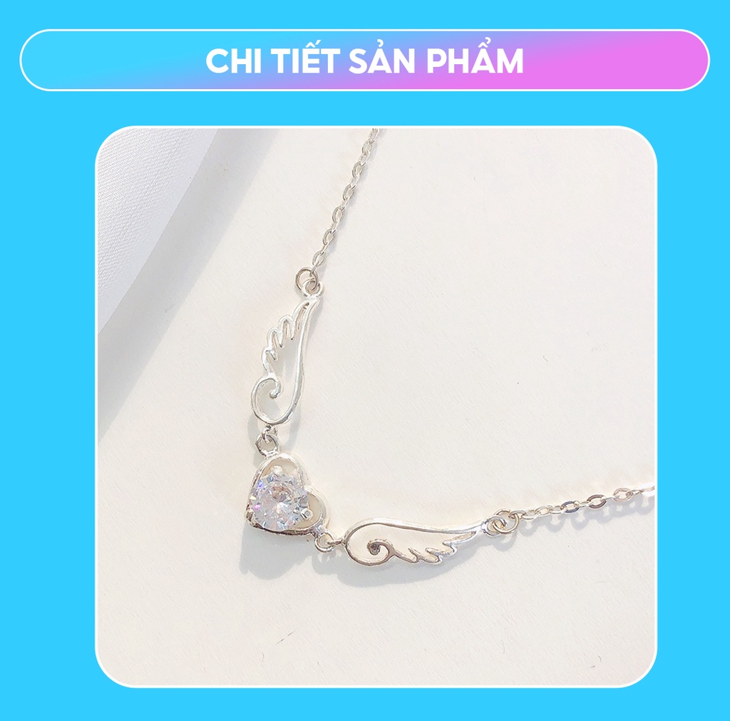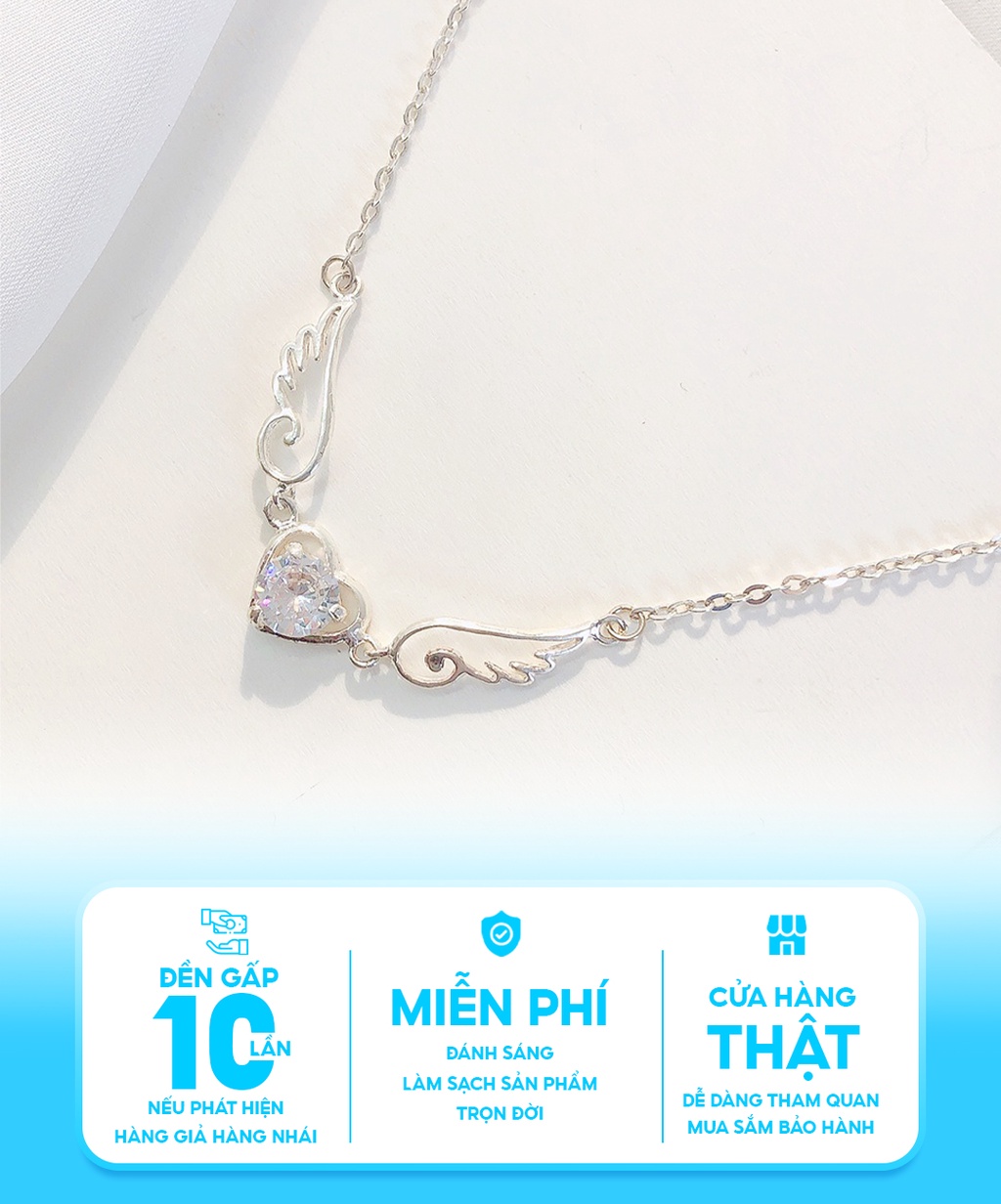 Dây chuyền bạc nữ hình cánh thiên thần mix đá nhiều màu bạc 925 thời trang phụ kiện trang sức nữ Viễn Chí Bảo D400127