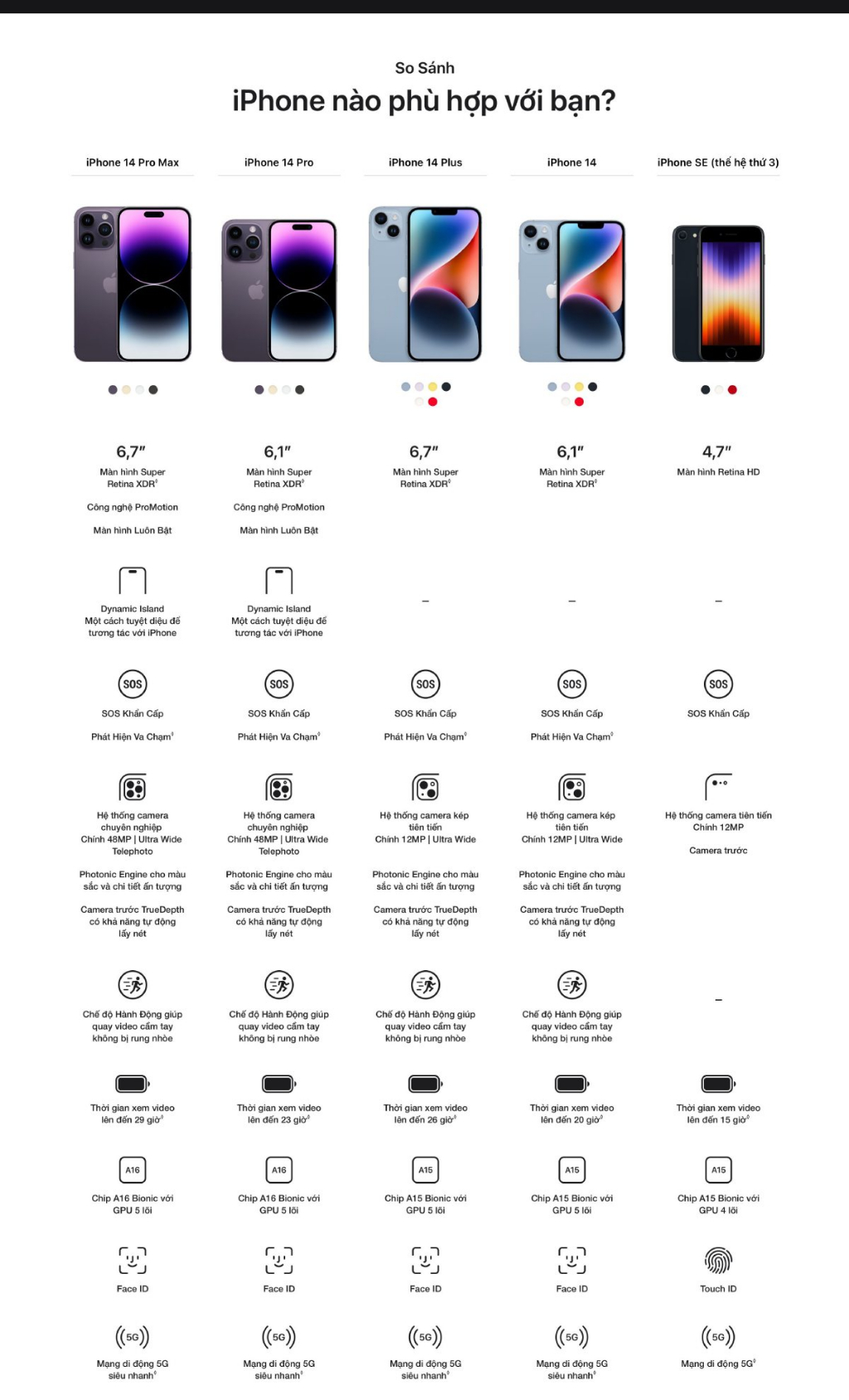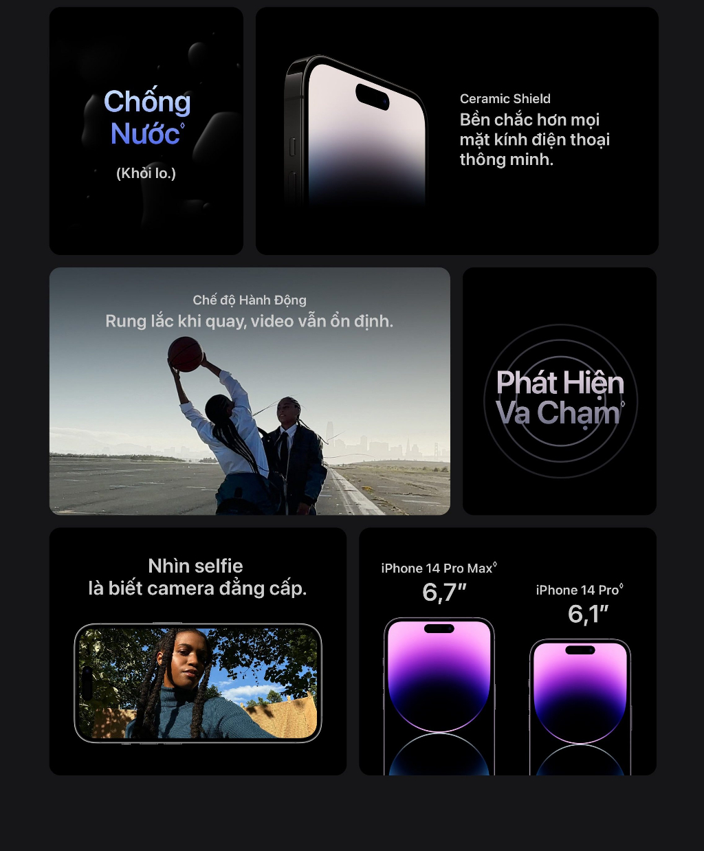 Điện thoại iPhone 14 Pro sở hữu trọng lượng 206g cùng thiết kế nhỏ gọn cho khả năng cầm nắm thoải mái. Về thông số màn hình, điện thoại được trang bị màn hình có độ phân giải 2556 x 1179 pixel và mật độ điểm ảnh 2556 x 1179 pixel mang lại khả năng hiển thị ấn tượng.Điện thoại được trang bị màn hình Dynamic Island siêu ấn tượng với khả năng tuy biến thành nhiều dạng theo điều khiển của người dùng. Nhờ đó người dùng có thể theo dõi và hiển thị nhanh các thông tin như cuộc gọi, chỉ đường, hẹn giờ,...Trên điện thoại iPhone 14 Pro, lần đầu Apple trang bị cho sản phẩm của mình camera cảm biến lớn. Theo đó, thiết bị đã được nâng cấp camera chính lên độ phân giải 48MP, kết hợp công ngệ pixel-pinning hỗ trợ nâng cao khả năng chụp hình trong điều kiện thiếu sáng.Điện thoại được trang bị viên pin dung lượng lớn cùng con chip Apple A16, thiết bị mang lại thời gian phát video trực tuyến lên tới 20 giờ hoặc 75 giờ phát nhạc.Bộ sản phẩm bao gồm: • Điện thoại • Dây sạc• HDSD Bảo hành điện tử 12 tháng.Thông tin bảo hành:Bảo hành: 12 tháng kể từ ngày kích hoạt sản phẩm.Kích hoạt bảo hành tại: https://checkcoverage.apple.com/vn/en/Hướng dẫn kiểm tra địa điểm bảo hành gần nhất:Bước 1: Truy cập vào đường link https://getsupport.apple.com/?caller=grl&locale=en_VN Bước 2: Chọn sản phẩm.Bước 3: Điền Apple ID, nhập mật khẩu.Sau khi hoàn tất, hệ thống sẽ gợi ý những trung tâm bảo hành gần nhất.Bộ sản phẩm bao gồm: • Điện thoại • Dây sạc• HDSD Bảo hành điện tử 12 tháng.Thông tin bảo hành:Bảo hành: 12 tháng kể từ ngày kích hoạt sản phẩm.Kích hoạt bảo hành tại: https://checkcoverage.apple.com/vn/en/Hướng dẫn kiểm tra địa điểm bảo hành gần nhất:Bước 1: Truy cập vào đường link https://getsupport.apple.com/?caller=grl&locale=en_VN Bước 2: Chọn sản phẩm.Bước 3: Điền Apple ID, nhập mật khẩu.Sau khi hoàn tất, hệ thống sẽ gợi ý những trung tâm bảo hành gần nhất.Tại Việt Nam, về chính sách bảo hành và đổi trả của Apple, "sẽ được áp dụng chung" theo các điều khoản được liệt kê dưới đây:1) Chính sách chung: https://www.apple.com/legal/warranty/products/warranty-rest-of-apac-vietnamese.html2) Chính sách cho phụ kiện: https://www.apple.com/legal/warranty/products/accessory-warranty-vietnam.html3) Các trung tâm bảo hành Apple ủy quyền tại Việt Nam: https://getsupport.apple.com/repair-locations?locale=vi_VNQúy khách vui lòng đọc kỹ hướng dẫn và quy định trên các trang được Apple công bố công khai, Shop chỉ có thể hỗ trợ theo đúng chính sách được đăng công khai của thương hiệu Apple tại Việt Nam,Bài viết tham khảo chính sách hỗ trợ của nhà phân phối tiêu biểu:https://synnexfpt.com/bao-hanh/chinh-sach-bao-hanh/?agency-group=1&agency-slug=san-pham-apple Để thuận tiện hơn trong việc xử lý khiếu nại, đơn hàng của Brand Apple thường có giá trị cao, Qúy khách mua hàng vui lòng quay lại Clip khui mở kiện hàng (khách quan nhất có thể, đủ 6 mặt) giúp Shopee có thêm căn cứ để làm việc với các bên và đẩy nhanh tiến độ xử lý giúp Qúy khách mua hàng.