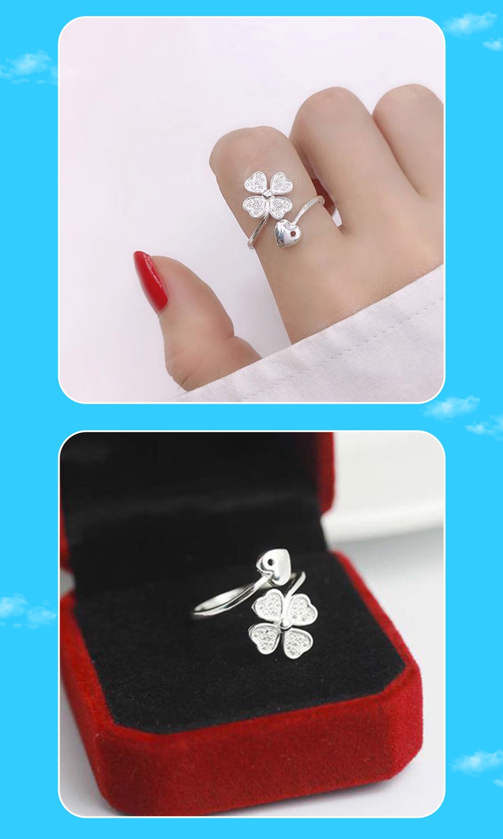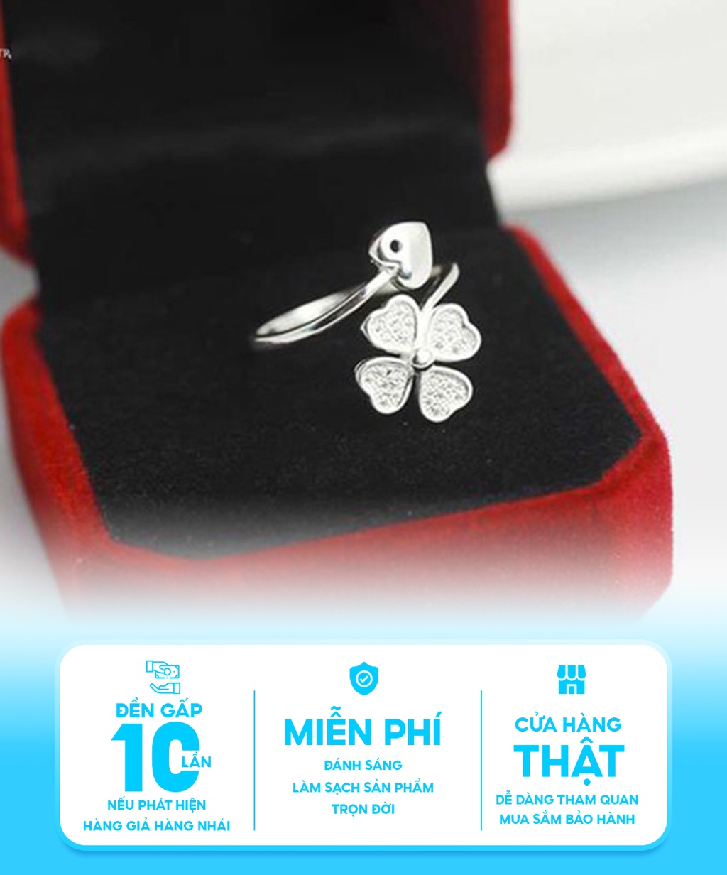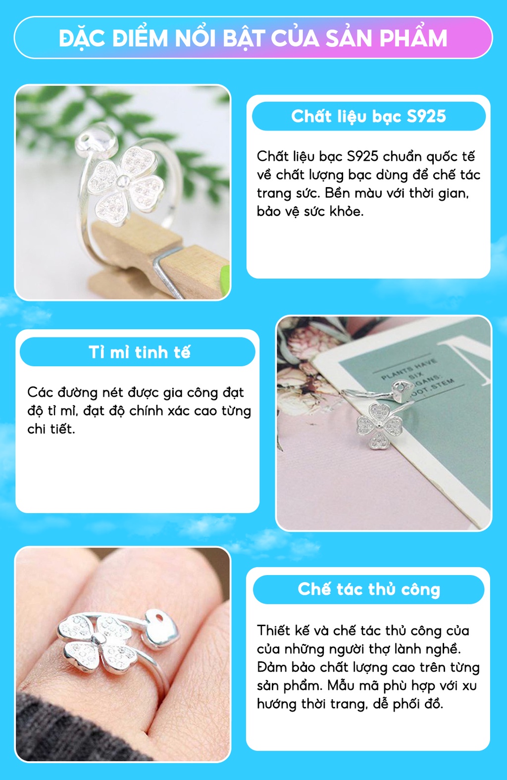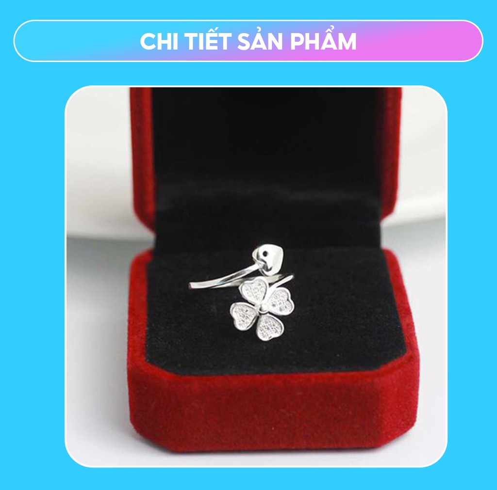 Nhẫn bạc nữ hình cỏ 4 lá may mắn chất liệu bạc s925 thời trang phụ kiện trang sức nữ thương hiệu Viễn Chí Bảo N400377