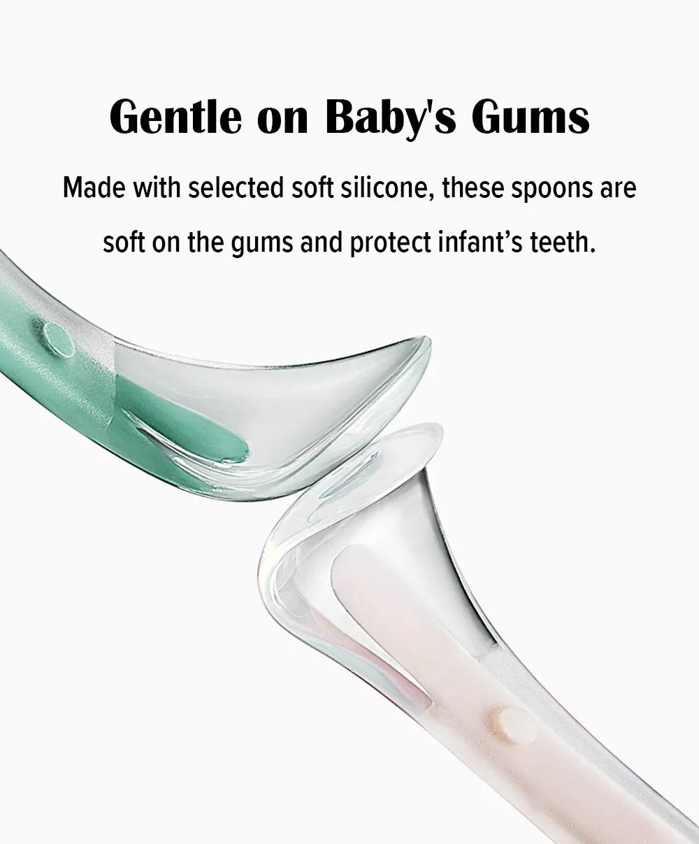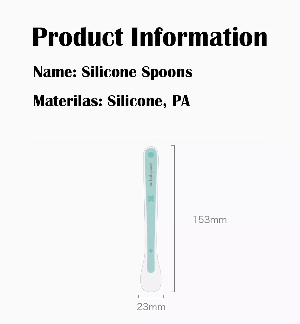 BC BABYCARE Bộ 2 chiếc thìa ăn bằng silicone mềm cấp thực phẩm an toàn và không chứa BPA cho bé