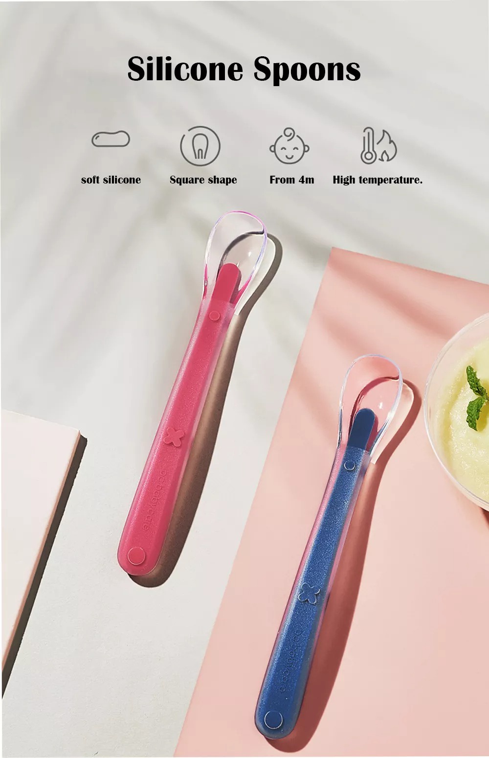Babycare 2 chiếc Thìa Silicone cho bé bú huấn luyện giai đoạn đầu tiên cho trẻ mới biết đi và trẻ sơ sinh không chứa BPA