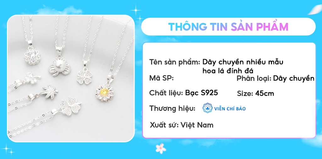 Dây chuyền bạc nữ nhiều mẫu hoa lá đính đá chất liệu bạc 925 thời trang phụ kiện trang sức nữ Viễn Chí Bảo