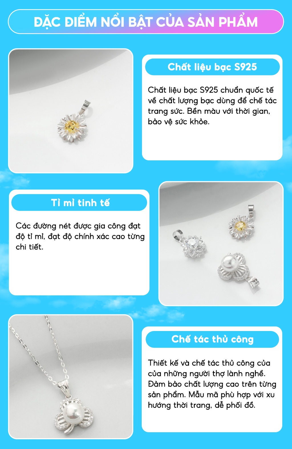 - Về mẫu mã : Nhiều mẫu dây chuyền bạc nữ, vòng cổ nữ đẹp, phù hợp với mọi lứa tuổi. Kiểu dáng dây chuyền nữ sang trọng, trẻ trung, theo trend và vô cùng cuốn hút.