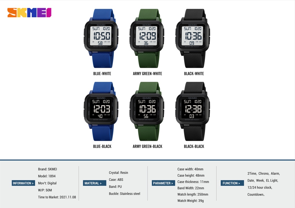 ✅Chào mừng bạn đến với 【SKMEI Official Store】 ✅Chuyên về đồng hồ SKMEI. ✅Thời gian giao hàng ước tính của sản phẩm này là 7-9 ngày. ✅Giao hàng: Tất cả các đơn hàng sẽ được giao nhanh chóng. ✅Aftersales: Giải pháp tốt nhất cho vấn đề của bạn. ✅Hy vọng bạn thích mua sắm của bạn.Thương hiệu: SkmeiMô hình: 1894Giới tính: NAMTrọng lượng: 39gPhong trào: chuyển động điện tửGương: ThôngTrường hợp: ABSKhối: PUTốt nhất: thép gỉĐộ sâu chống thấm nước: 50MChiều rộng quay số: 40mmĐộ dày quay số: 11mmChiều rộng cá cược: 22mmTổng chiều dài đồng hồ: 250mmBảo hành: KhôngChức năng: hai lần, thiết kế đồng hồ bấm giờ, phát sáng EL, ngày hiển thị, đồng hồ báo thức, hiển thị tuần, thời gian tổng thể, 12/24 giờ, đếm ngượcGói bao gồm: 1 * đồng hồ SKMEI•Dịch Vụ:1.Chúng tôi là nhà sản xuất ban đầu.2.Tất cả các sản phẩm là 100% mới và nguyên bản.3.Chúng tôi cam kết cung cấp cho bạn sản phẩm với chất lượng cao nhất với giá cả hợp lý. 4.Chắc chắn tận tâm để cung cấp trải nghiệm khách hàng tốt! 5.Sự hài lòng của khách hàng là mục tiêu theo đuổi quan trọng đối với chúng tôi như mọi khi. 6.Mọi người có thể yên tâm mua hàng của chúng tôi để nhận được sản phẩm chính hãng với dịch vụ chăm sóc khách hàng tuyệt vời của chúng tôi.