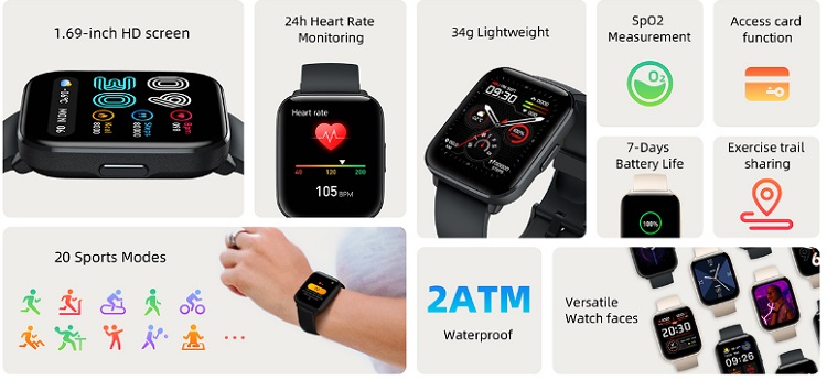 *** THÔNG TIN SẢN PHẨM:- Mang một thiết kế đẹp mắt, tinh xảo với các lỗ nhỏ đều trên dây đeo không gây cảm giác bí hơi, smartwatch Mibro C2 chắc chắn sẽ chiếm được cảm tình của các tín đồ công nghệ. Toàn bộ thiết bị có kích thước 43.2x36.2x9.6mm với cân nặng chỉ 34g, vật liệu nhựa cao cấp tạo điểm nhấn sạch sẽ và bóng bẩy hơn.