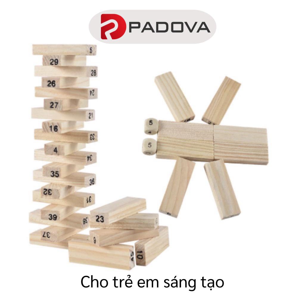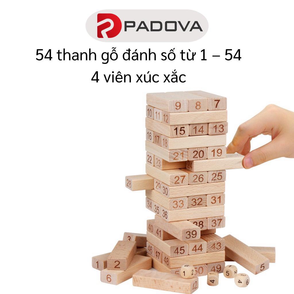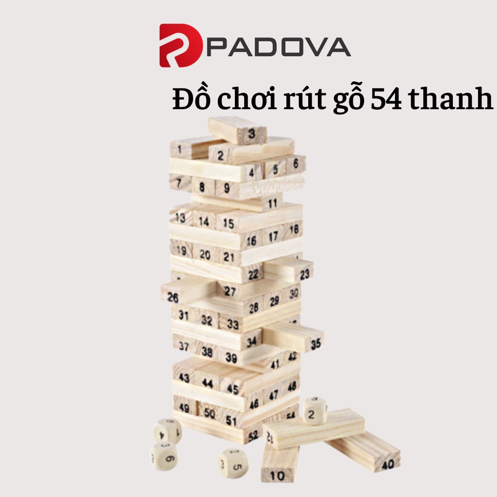 Tên sản phẩm: Đồ Chơi Rút Gỗ PADOVA 54 Thanh, 4 Viên Xúc Xắc Cho Bé Rèn Luyện Trí Não