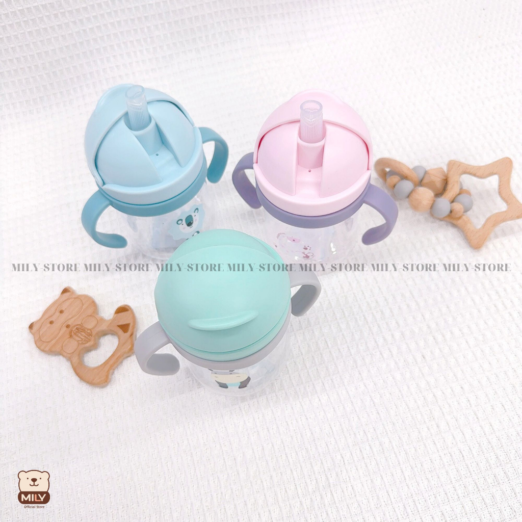 Bình tập uống nước chính hãng Mily 250ml có van chống sặc, tay cầm nhựa PP CC an toàn.