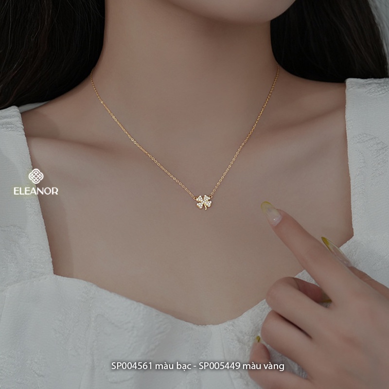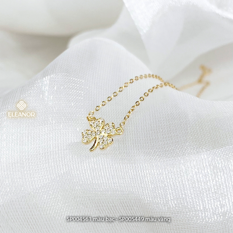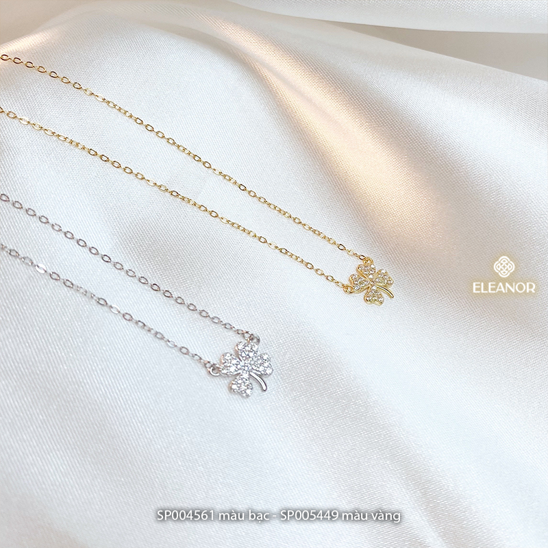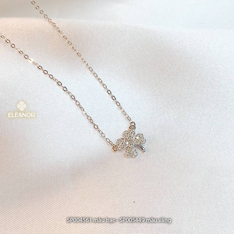 Dây chuyền nữ bạc 925 Eleanor Accessories mặt hình cỏ bốn lá đính đá phụ kiện trang sức 4561