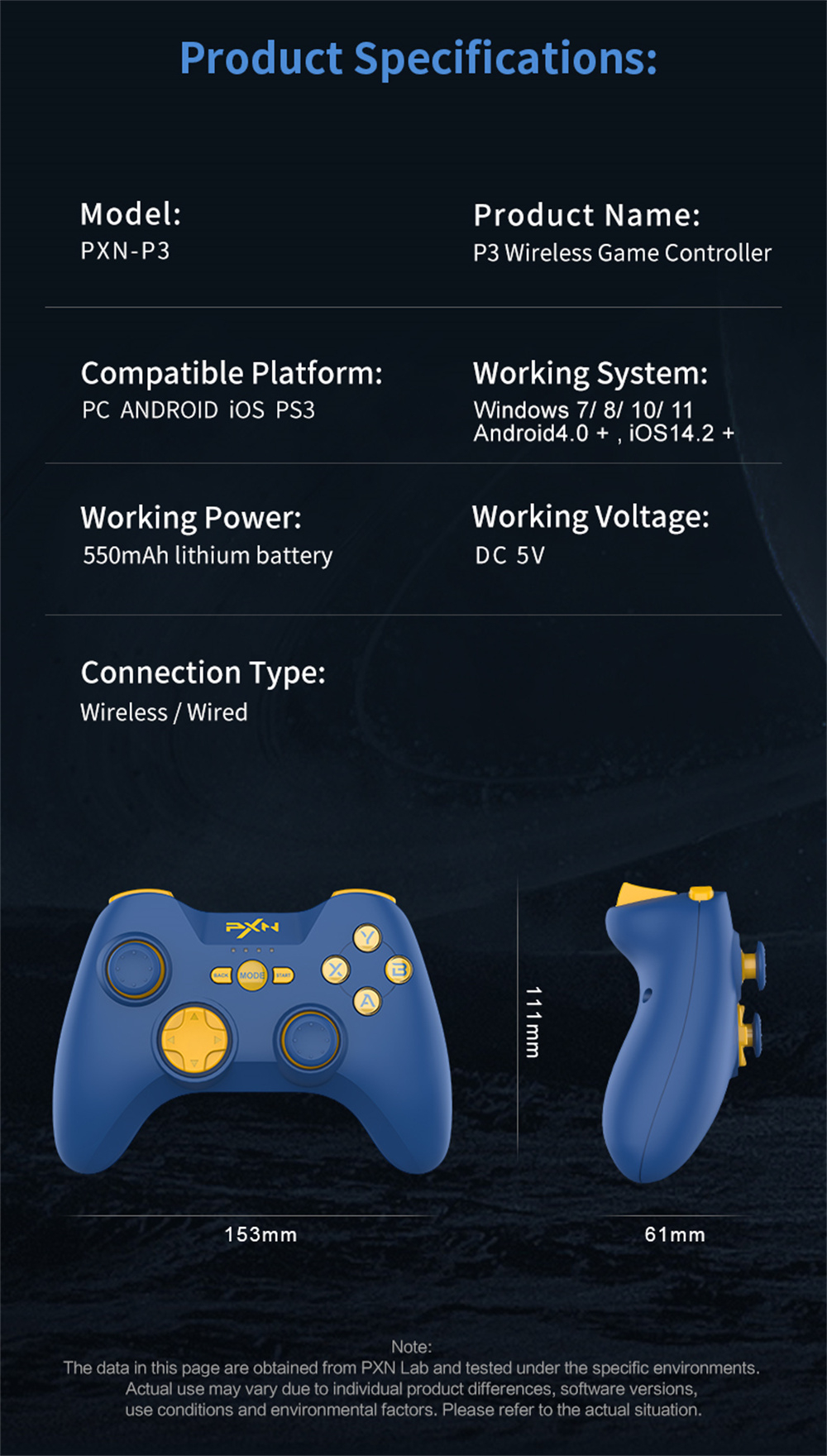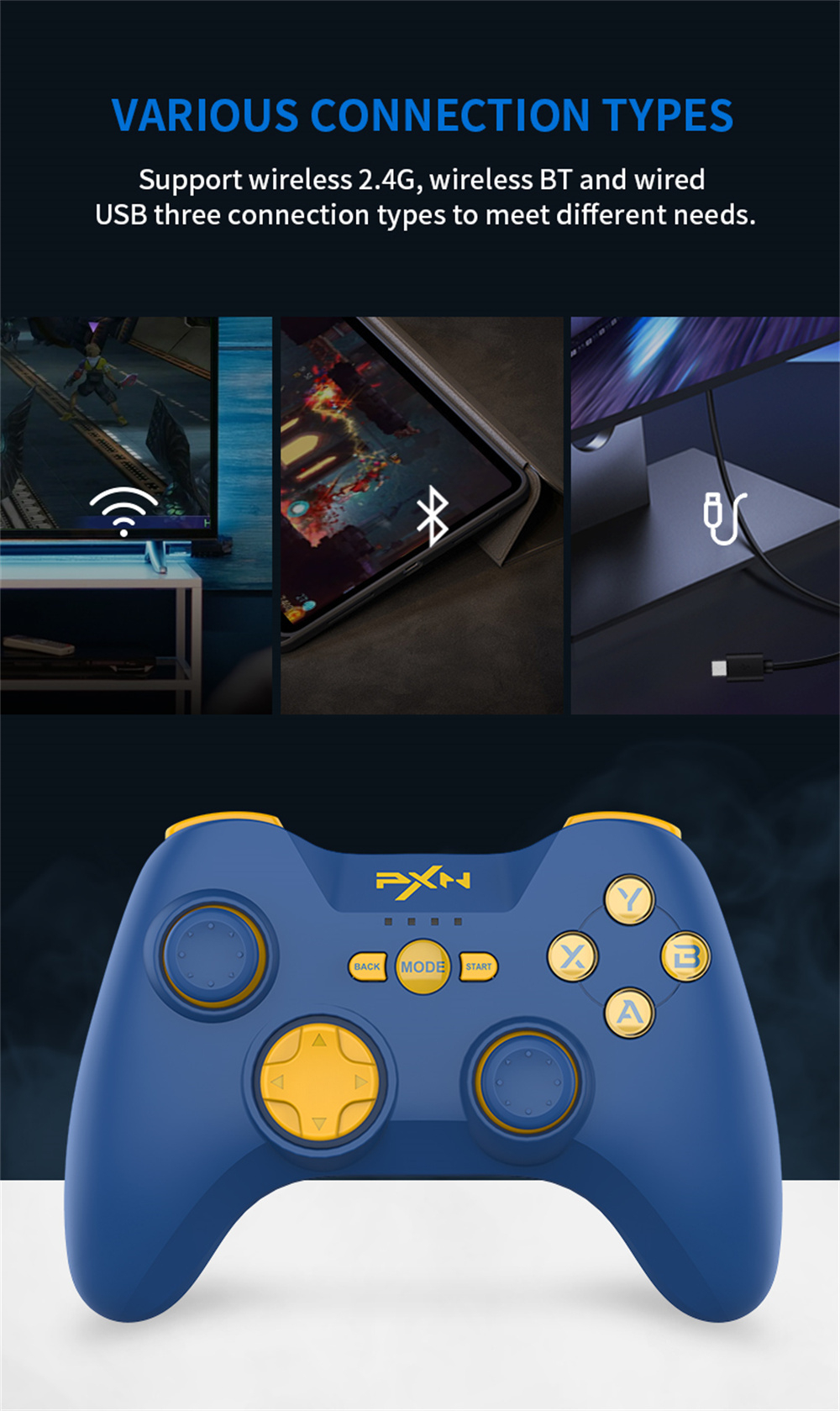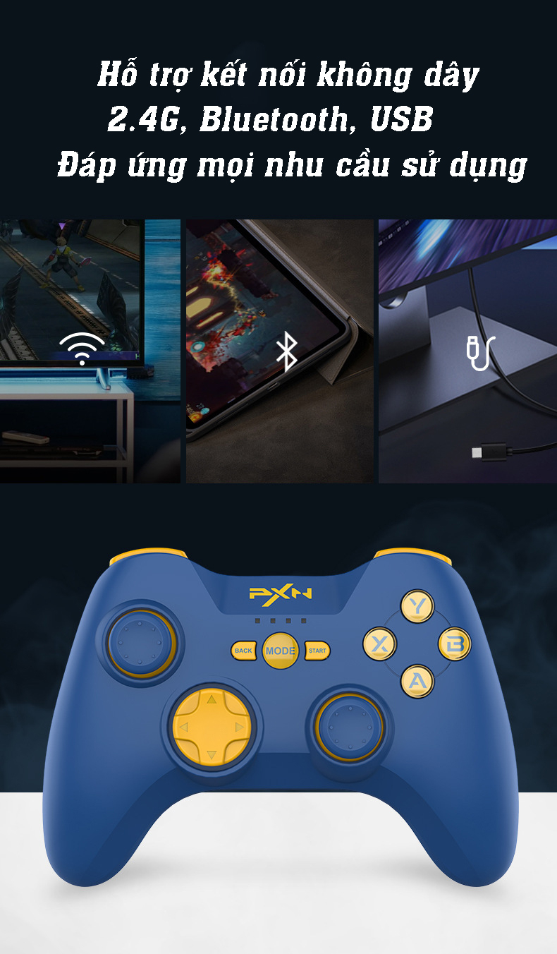 ⬇️ Chi tiết sản phẩm:1. Tên sản phẩm: Tay Cầm Chơi Game Không Dây PXN 96132. Hỗ trợ cảm ứng trên tay cầm3. Tùy chỉnh 5 mức độ rung và led.4.Tương thích: PC, Android, Máy Console, Smarrt tivi,..5. Pin: 600mAh, thời lượng chơi liên tục trong 10 tiếng.6. Bảo hành 12 tháng⬇️ Mô tả sản phẩm Tay Cầm Chơi Game Không Dây PXN 9613: ✔️ Tay cầm sử dụng công nghệ truyền dẫn không dây Bluetooth, cho tín hiệu ổn định, chống nhiễu mạnh, khoảng cách kết nối dài và không có độ trễ. Tay cầm có thể cắm là chạy mà không cần lắp thêm ổ cứng điều khiển.✔️ Động cơ cảm biến cơ thể rung kép không đối xứng tích hợp, cường độ rung có thể được điều chỉnh theo năm cấp độ, trải nghiệm thực tế về va chạm, rung, bắn súng và các cảnh khác trong trò chơi.✔️ Kết nối nhanh và đơn giản.✔️ Pin dung lượng lớn, thời gian sử dụng dài.⬇️HƯỚNG DẪN KẾT NỐI TAY CẦM PXN 9613 VỚI CÁC NỀN TẢNG✔️ (Windows) Laptop hoặc PC có Bluetooth : Tay cầm ở chế độ tắt >> Giữ nút A rồi ấn HOME (hình ngôi nhà ) A+HOME để đèn nháy chớp liên tục rồi tìm thiết bị trong window✔️ (Android) Điện thoại Android : Tay cầm ở chế độ tắt >> Giữ nút + rồi ấn HOME ( hình ngôi nhà ) + + Home tìm thiết bị mang tên QMacro hoặc GamePad để nhận thiết bị Android hoặc Cách 2 là dùng phím X+HOME✔️ (Nintendo Switch : Tay cầm ở chế độ tắt >> Giữ nút B + rồi ấn HOME ( hình ngôi nhà ) B + HOME đèn nháy chớp liên tục và tìm thiết bị trên máy nintendo switch✔️ ( iOS) Tay cầm ở chế độ tắt >> Giữ nút Y + rồi ấn HOME ( hình ngôi nhà ) Y + HOME đèn nháy chớp liên tục và tìm thiết bị trên máy iPhone / Ipad✔️ Playstation 3 , Android TV Box một số thiết bị cần có đầu USB Nano Receiver giá 79k để kết nối hoặc cắm dây ***Sản phẩm hỗ trợ tốt điện thoại Apple iOS 15 với các game đã test như Genshin Impact ( giữ nút Y + Home và kết nối Bluetooth) ?̉?? ???̛̣? ??̂́ ??̉? ???̂̉? ???̣? ??̣? ???? ?????? - ??? ???̂́? ??̣? ??????