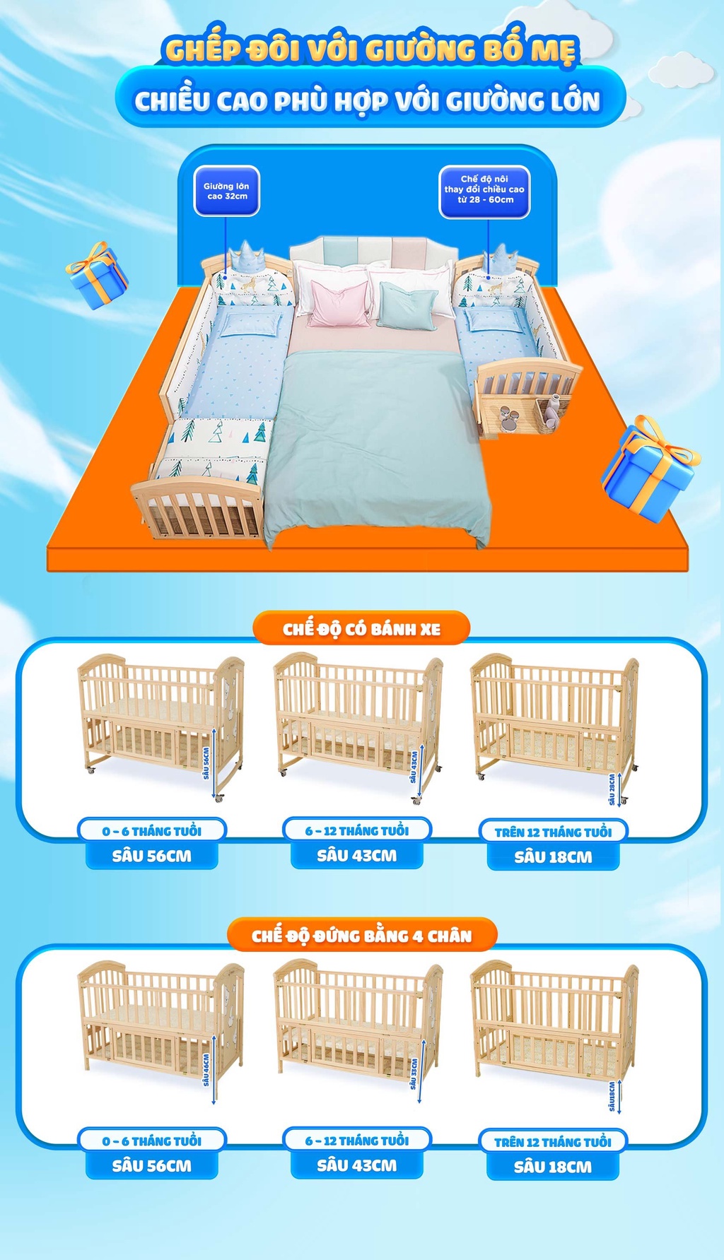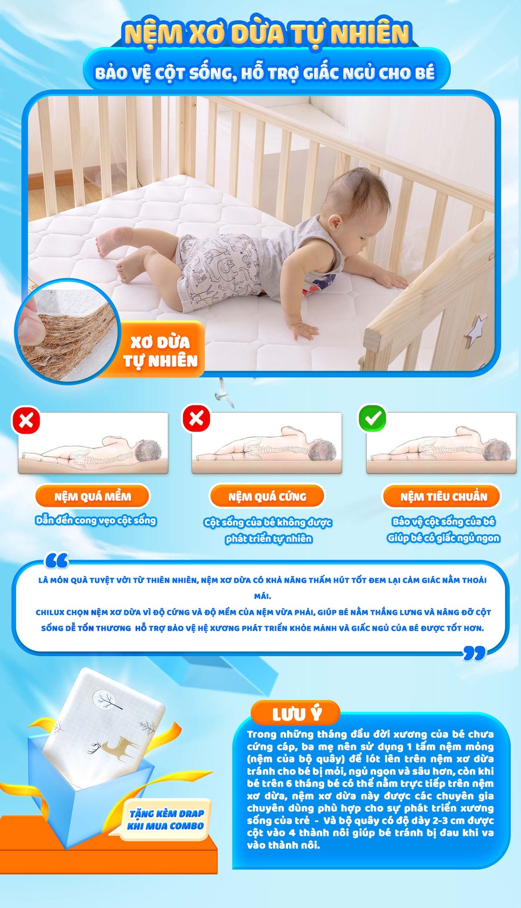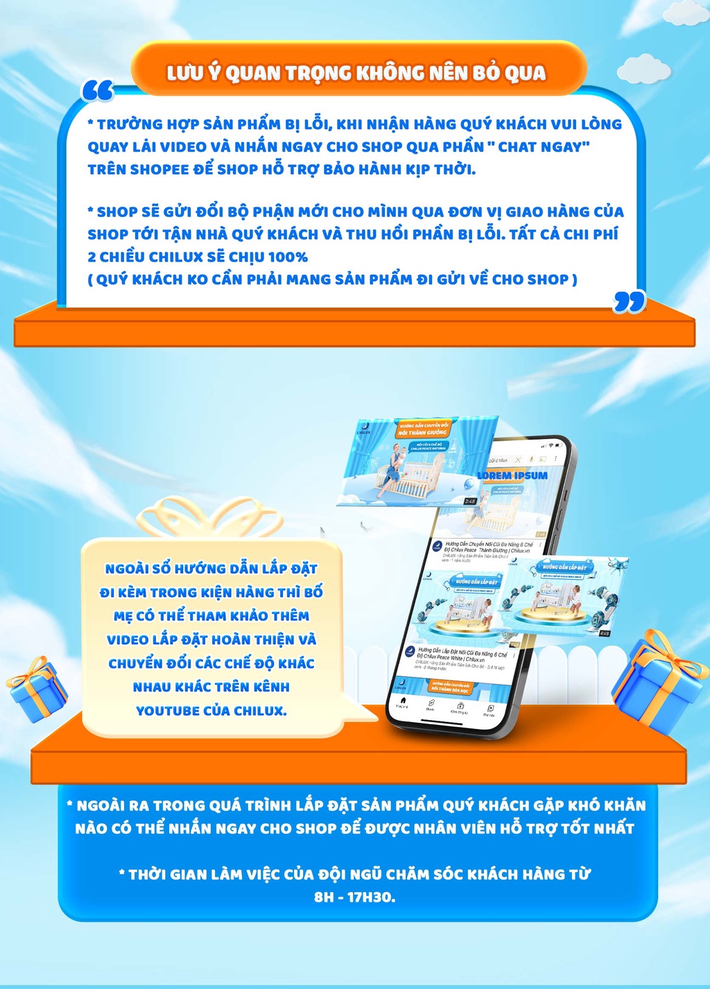 1.Vì sao bố mẹ nên mua cũi cho bé sử dụng trong những năm tháng đầu đời?- Bé được ngủ riêng trong cũi từ sớm sẽ không bị quện hơi mẹ, không phụ thuộc vào người lớn, tránh thói quen xấu như liên tục đòi bé, bú lặt vặt, bám mẹ không rời.- Khi bé lớn bắt đầu lật, bò, đứng, vịn hay chơi đùa nhìu hơn thì chiếc cũi cho bé sẽ là trợ thủ đắc lực của bố mẹ, vừa đảm bảo an toàn cho bé vừa rèn luyện được thói quen ngủ độc lập trong chiếc cũi xinh xắn của riêng mình.- Chiếc cũi cho bé còn giúp mẹ thảnh thơi hơn, vừa chăm sóc gia đình vừa chăm con một cách khoa học. Củi cho bé được trang bị những chức năng tiện lợi như chế độ bập bênh ru bé ngủ, chế độ bánh xe có thể đẩy bé đi khắp nhà theo chân của mẹ. Giờ đây việc trông con sẽ dễ dàng hơn nhờ chiếc cũi em bé đa năng này.- Ngoài ra chiếc cũi em bé còn có thể chuyển đổi thành giường lớn và ghép sát vào giường của bố mẹ, bố mẹ sẽ tiện hơn trong việc chăm sóc bé khi ngủ đặc biệt là vào ban đêm.- Một điểm cộng thêm cho chiếc cũi trẻ em là được thiết kế đẹp mắt kết hợp với màu gỗ tự nhiên tạo nên tổng thể hài hoà có thể trang trí cho không gian căn nhà- Hơn nữa, thời gian sử dụng cũi trẻ em thường kéo dài từ 5 – 10 năm, rất tiết kiệm, an toàn, tiện lợi.2. Nôi cho bé Chilux sự lựa chọn hàng đầu cho mẹ và bé* Nôi cho bé chilux đa năng 6 chế độ đồng hành cùng con từ 0 tháng tuổi đến tận 12 tuổi. + Chế độ giường 1 sâu 35cm dành cho bé từ 0 – 6 tháng tuổiỞ độ tuổi còn sơ sinh thì con chủ yếu nằm ngủ và chơi với mẹ, chính vì vậy nên sử dụng nôi cho bé ở chế độ này để thuận tiện cho việc chăm bé, dễ dàng thay tã. Ở chiều sâu này chúng ta tận dụng được ngăn dưới của nôi để đựng các vật dụng cần thiết cho bé khi cần. Có cửa đóng mở dễ dàng bằng nút bấm.+ Chế độ giường 2 sâu 50cm dành cho bé từ 6 – 12 tháng tuổiBé với tháng tuổi này đã tinh nghịch hơn và bắt đầu tập lật, tập bò nên bố/mẹ điều chỉnh nôi ở nấc này. Sẽ yên tâm hơn cho bé thoải mái tập lật trong nôi nhé. + Chế độ giường 3 sâu 65cm dành cho bé từ 12-36 tháng tuổiỞ độ tuổi trên 1 năm này bé đã lớn và đang trong tuổi tập đứng, tập đi, thích khám phá, nghịch nghợm nên các mẹ hạ chiếc nôi gỗ ở chế độ 3 để phù hợp với chiều cao của bé, giúp bé chơi trong nôi thoải mái hơn.+ Chế độ ghép đôi giường với bố mẹCó thể điều chỉnh chiều cao của nôi đa năng linh hoạt từ 28cm đến 60cm. Giúp mẹ có thể quan sát bé yêu mỗi tối, ngắm nhìn được bé ngủ say và ngon giấc.+ Chế độ giường cũi lớn cho bé từ 3 tuổi trở lênChức năng đặc biệt của chiếc nôi cho bé này là đem đến sự tiện lợi và tiết kiệm về lâu dài: Có thể kéo thành giường dài lên đến 1m6 để phù hợp cho bé nằm một cách thoải mái. + Bàn làm việc, bàn học khi bé lớnMột chiếc bàn xinh xắn và đủ chắc chắn sẽ được chuyển khi bé lớn.* Hiện nay ở Việt Nam, nôi cho bé sơ sinh với chất liệu gỗ được ba mẹ ưa chuộng lựa chọn hơn hết bởi sự an toàn và sang trọng, chilux lựa chọn gỗ thông nhập khẩu 100% từ New Zealand đạt tất cả tiêu chuẩn an toàn.– Có độ cứng cao, kết cấu cực kỳ chắc chắn.– Gỗ tự nhiên có tuổi thọ cao vì vậy sản phẩm rất bền và an toàn.– Có khả năng chống côn trùng, mối mọt.– Khả năng chịu ẩm tốt, ít bị nứt nẻ khi tiếp xúc với ánh mặt trời.– Đặc biệt, màu sắc tự nhiên đẹp đẽ, sang trọng và bắt mắt.* Nôi em bé Chilux được thiết kế theo tiêu chuẩn Châu Âu, đảm bảo an toàn về các thông số như khoảng cách các khung cũi 5.5cm tránh trường hợp bé bị kẹt tay, độ tiện lợi khi có thể linh hoạt biến thành giường ngủ, bàn học, nôi bập bênh.* Đặc biệt Chilux đã mở nhà máy trực tiếp sản xuất nôi trẻ em tại Việt Nam với diện tích rộng tới 2000m2, làm chủ tất cả các khâu sản xuất, từ nhập khẩu nguyên liệu gỗ đến từng công đoạn hoàn thiện sản phẩm để đảm bảo từng chiếc nôi cũi cho bé được an toàn tuyệt đối với trẻ sơ sinh3.Tiêu chí khi chọn lựa nôi cũi, giường cũi cho bé Kích cỡ: Bố mẹ nên chọn những loại nôi cũi, giường cũi cho bé không nên quá lớn cũng không nên quá nhỏ phù hợp nhất cho bé sử dụng cho đến khi lớn, thì kích thước chuẩn của chilux là sự lựa chọn hoàn hảo nhất.#noicui #noiembe #noichobe #giườngcũi #cũichobésơsinh #NoicuiChilux #NoicuichobeChilux #NoiembeChilux #cũichobé #noicui #cuigo #giuo
