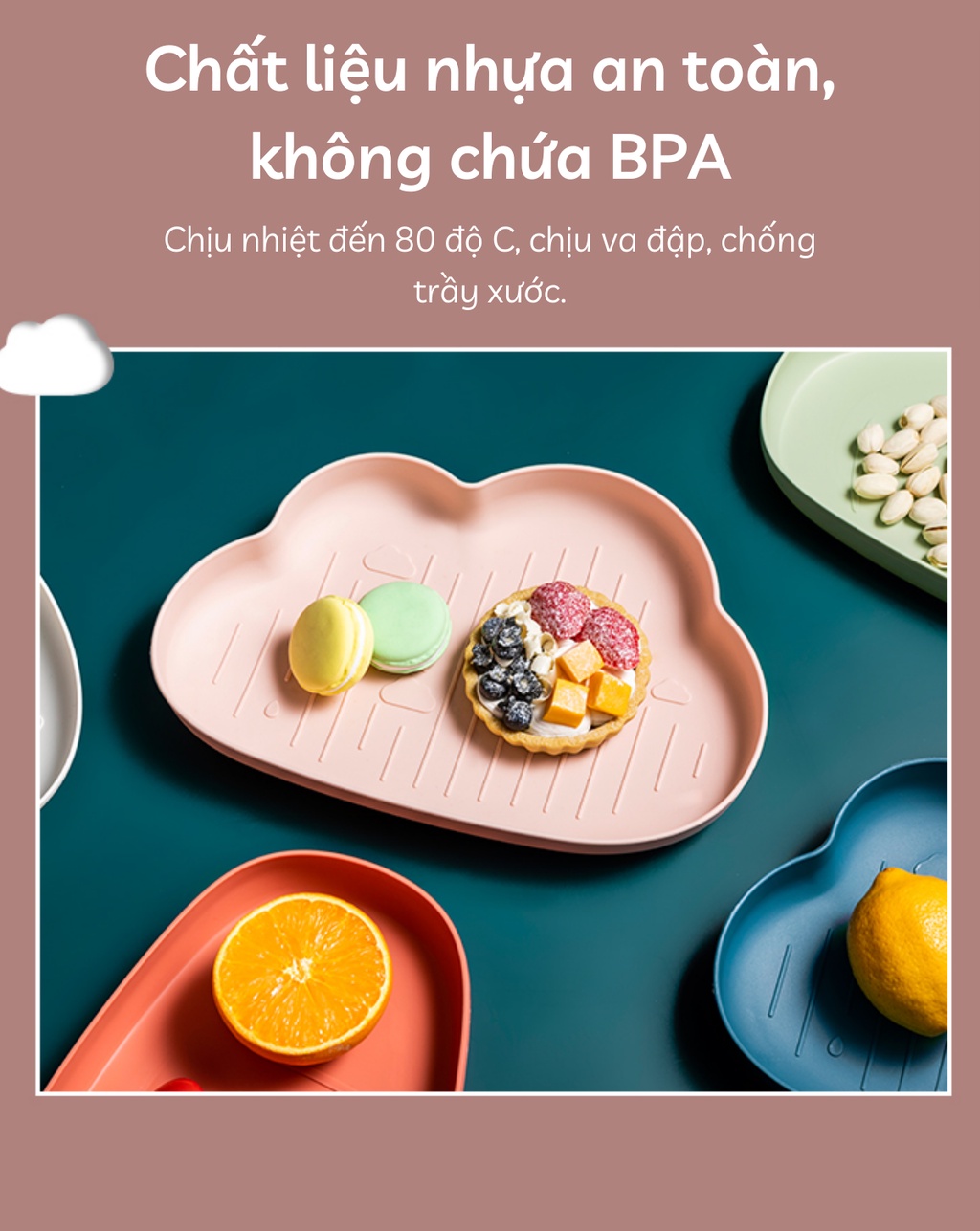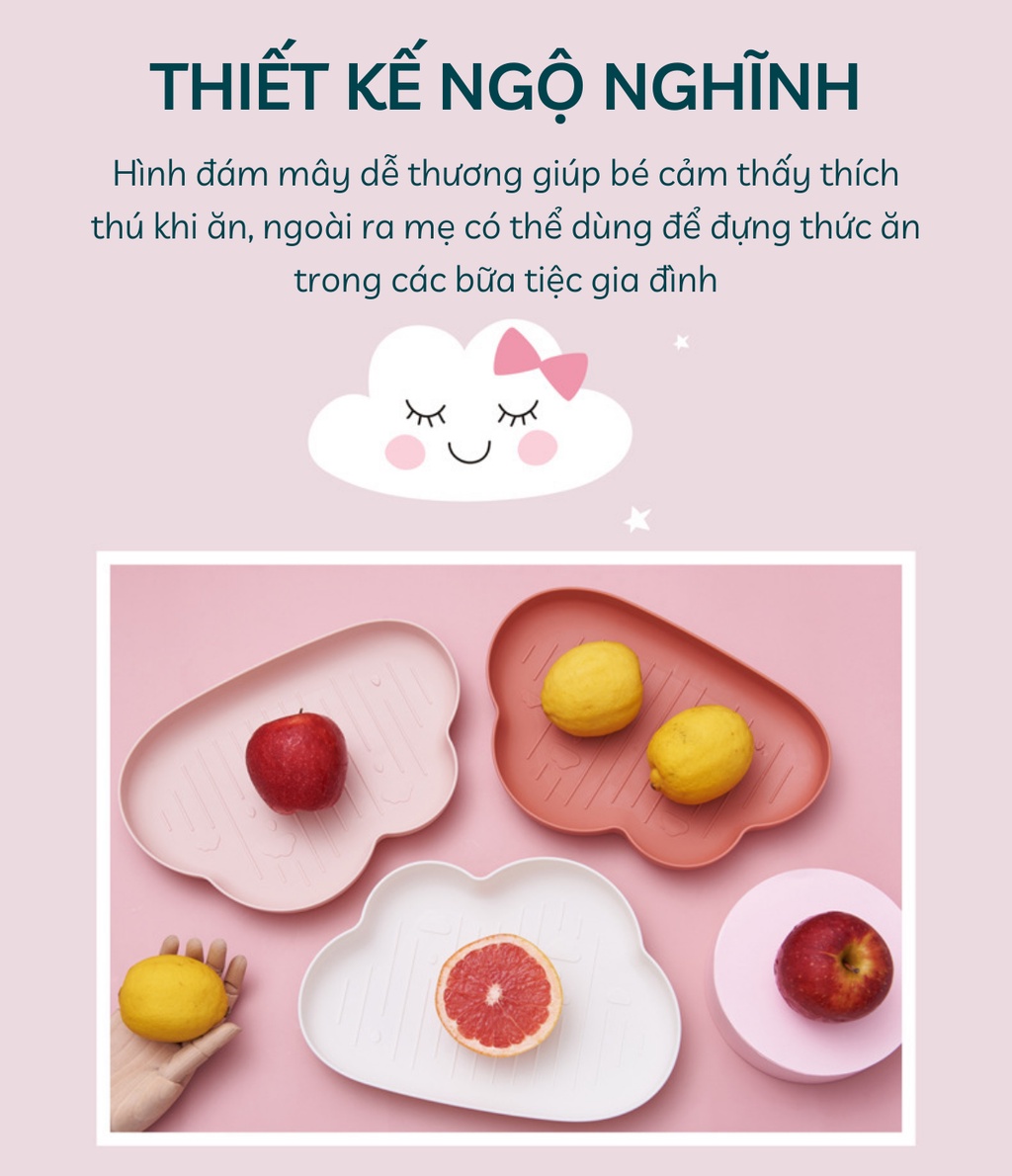Khay Ăn Dặm Nhựa Hình Đám Mây Siêu Yêu Cho Bé