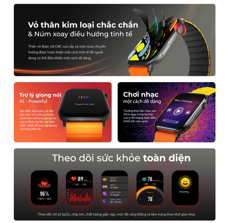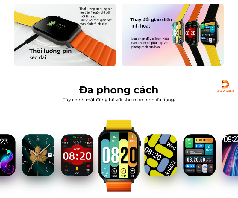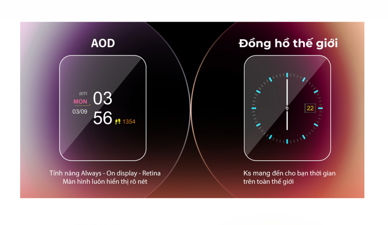 App hỗ trợ: KIE OSHộp sản phẩm bao gồm:- Đồng hồ- Giấy HDSD- Dây cáp sạc- Dây đeo thay thế x 1 - Dán chống trầy x 1