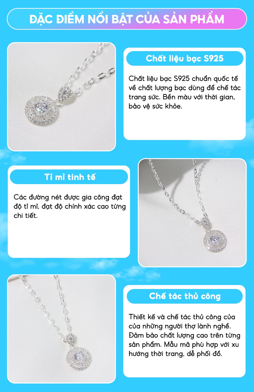 - Sản Xuất : vòng cổ bạc nữ được sản xuất trực tiếp tại xưởng Việt Nam hoặc nhập khẩu