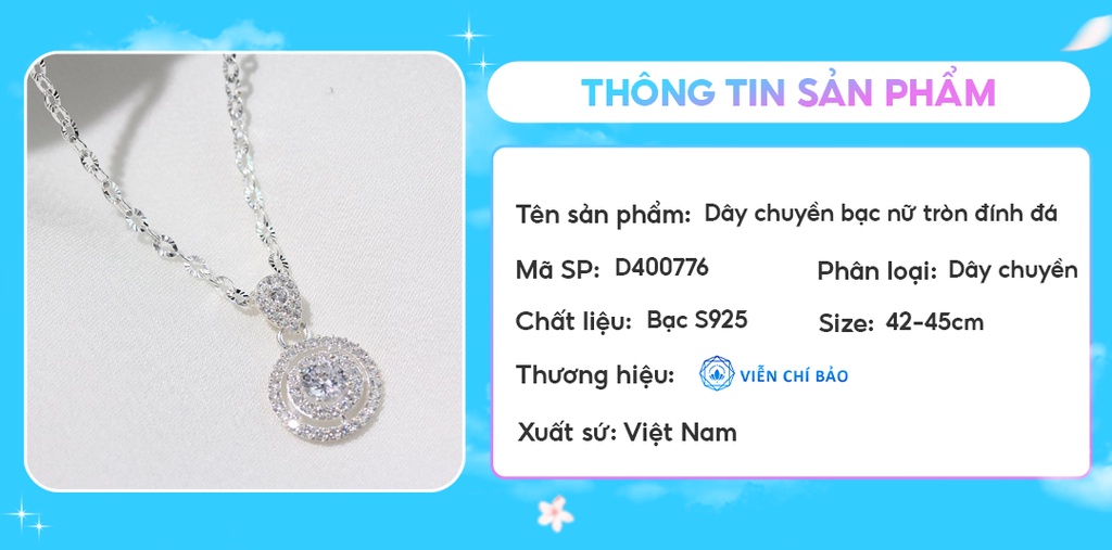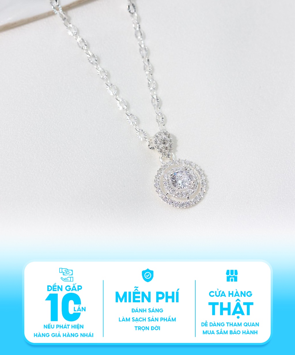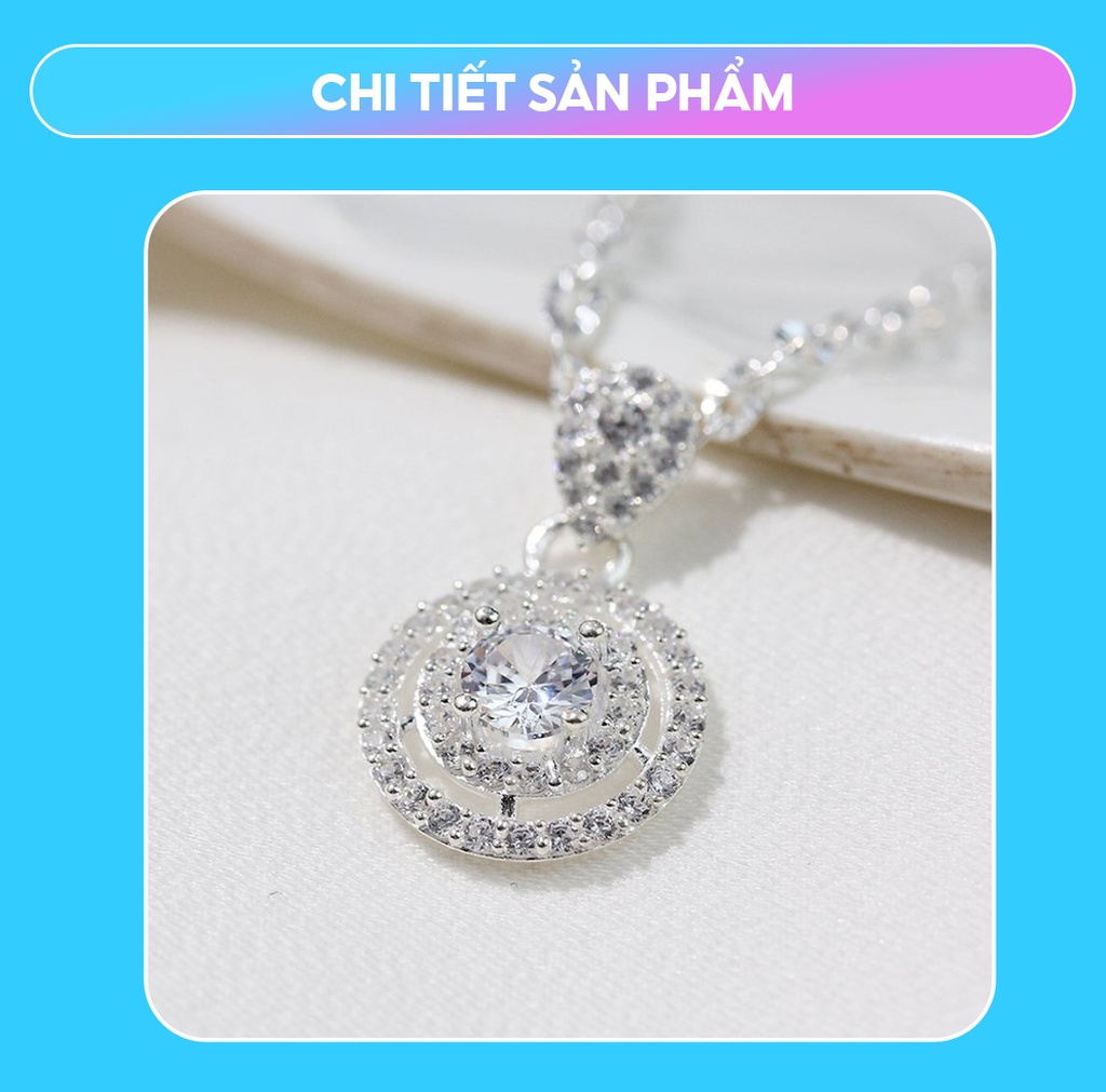 Dây chuyền bạc nữ tròn đính đá chất liệu bạc 925 thời trang phụ kiện trang sức nữ Viễn Chí Bảo D400776